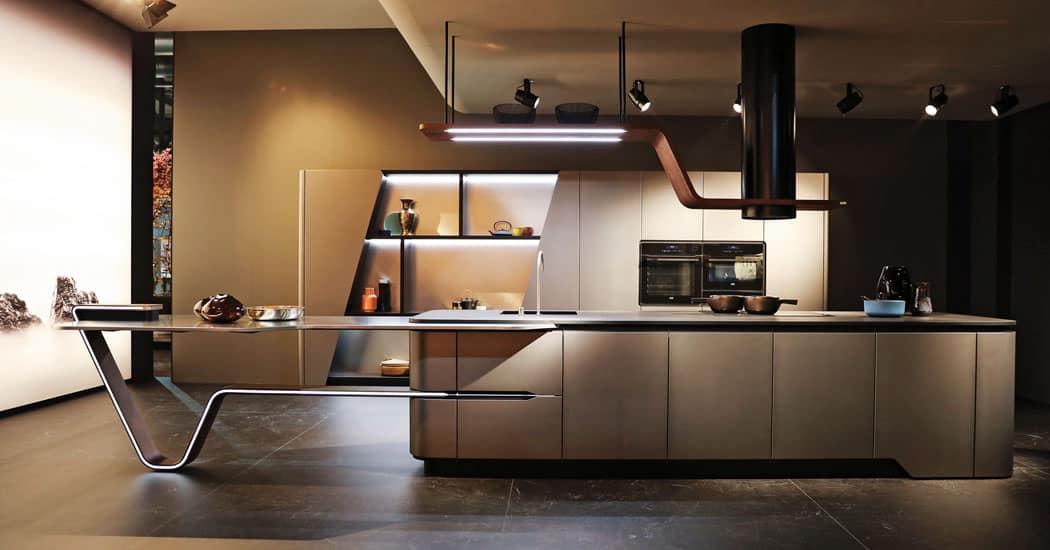 Kreace Vision, kterou italská společnost Snaidero představila na letošním veletrhu Eurocucina v Miláně, pracuje s šikmým liniemi. Nejde však jen o vzhled, dynamické a subtilní kovové prvky dodávají větší pevnost i nové možnosti praktického využití (např. propojení digestoře s osvětlením)