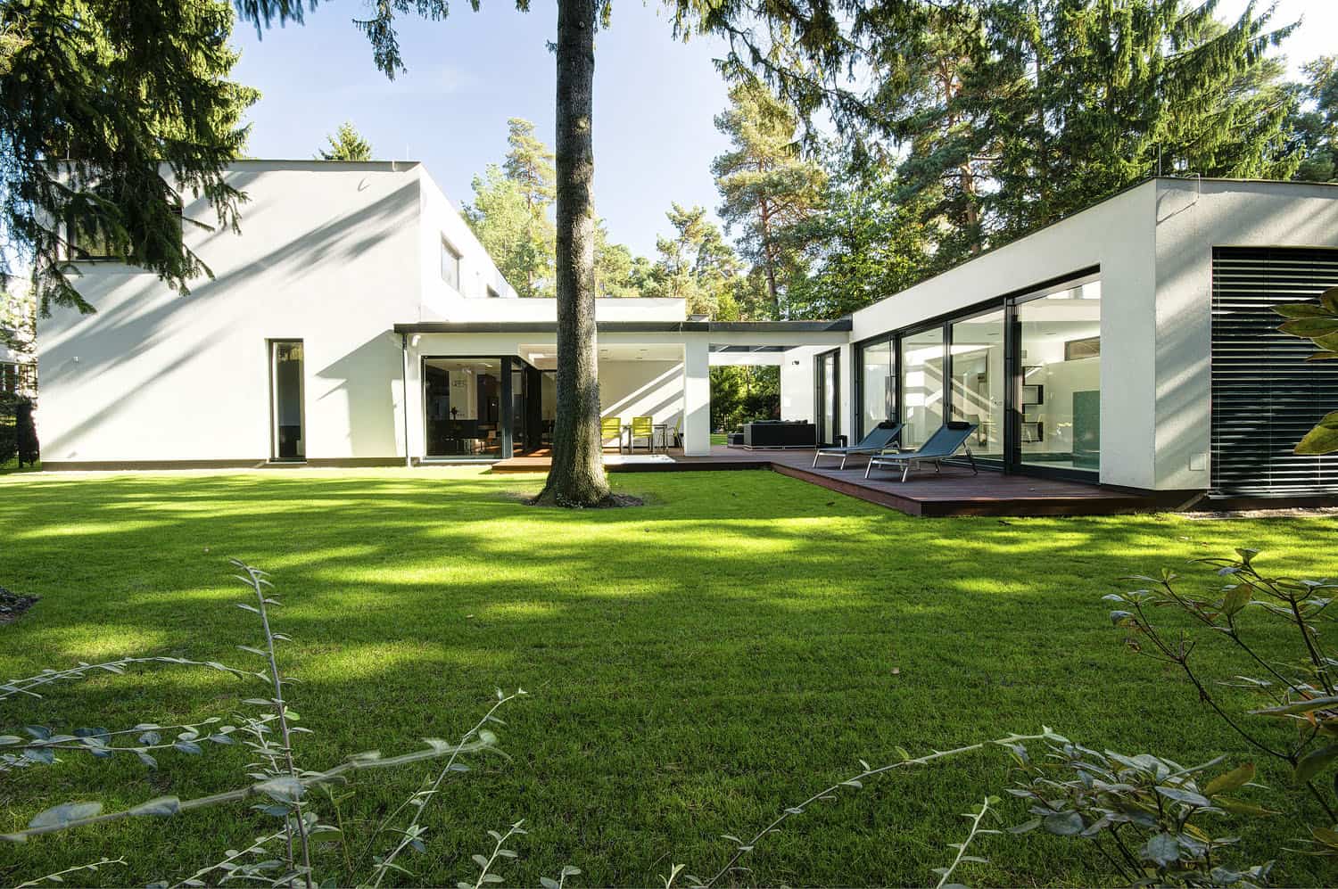Paní domu má ráda stín: „Proto jsem se do zalesněné parcely v zahradní čtvrti zamilovala na první pohled.“ I lásku z čistého nebe však mohou pronásledovat překážky. Získat pozemek na stavbu rodinného domu se podařilo až po dlouhých čtyřech letech. Vytrvalost majitelky se však vyplatila: „Pocházím z nedaleké obce, a tak jsem děti nejprve do školy dovážela. Teď už tam mohou docházet a z nového domova jsou nadšené. Já sama pocházím z rodinného domku a neuměla jsem si svůj domov představit jinak než v zeleni a se zahradou. Pro děti je to velmi dobré prostředí.“