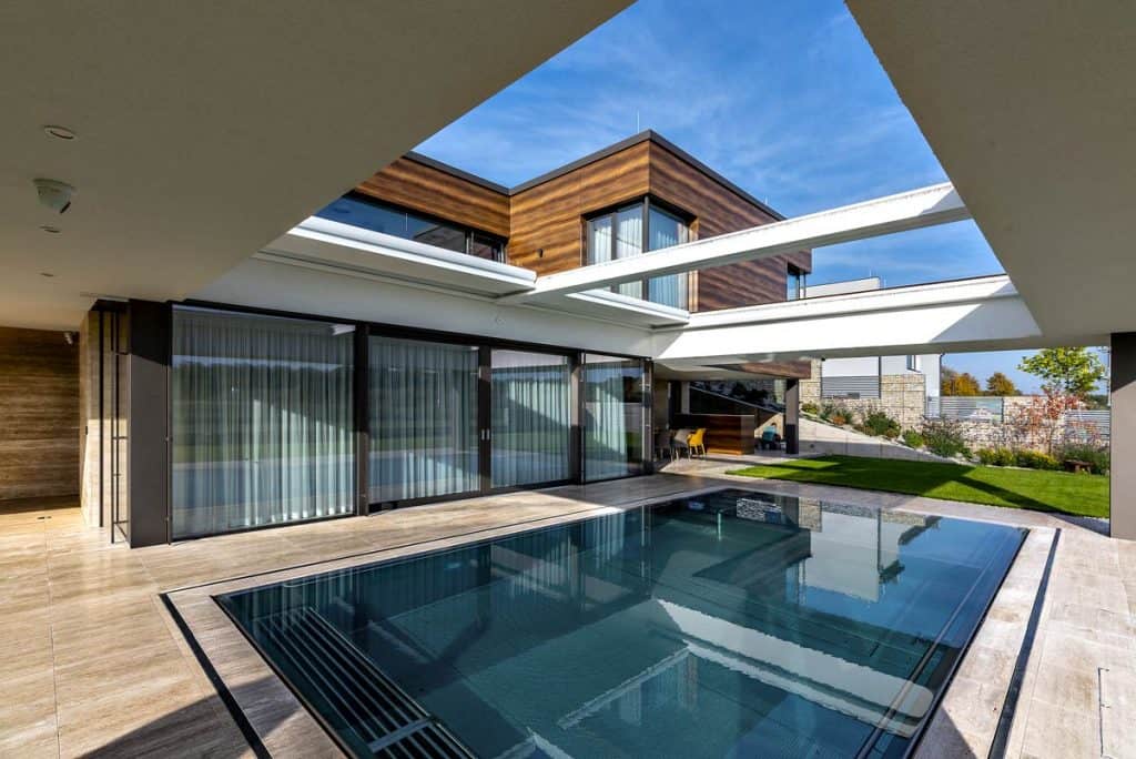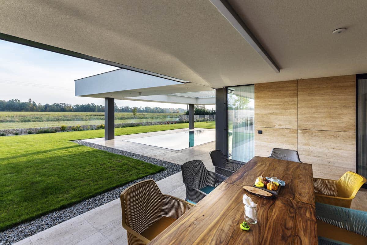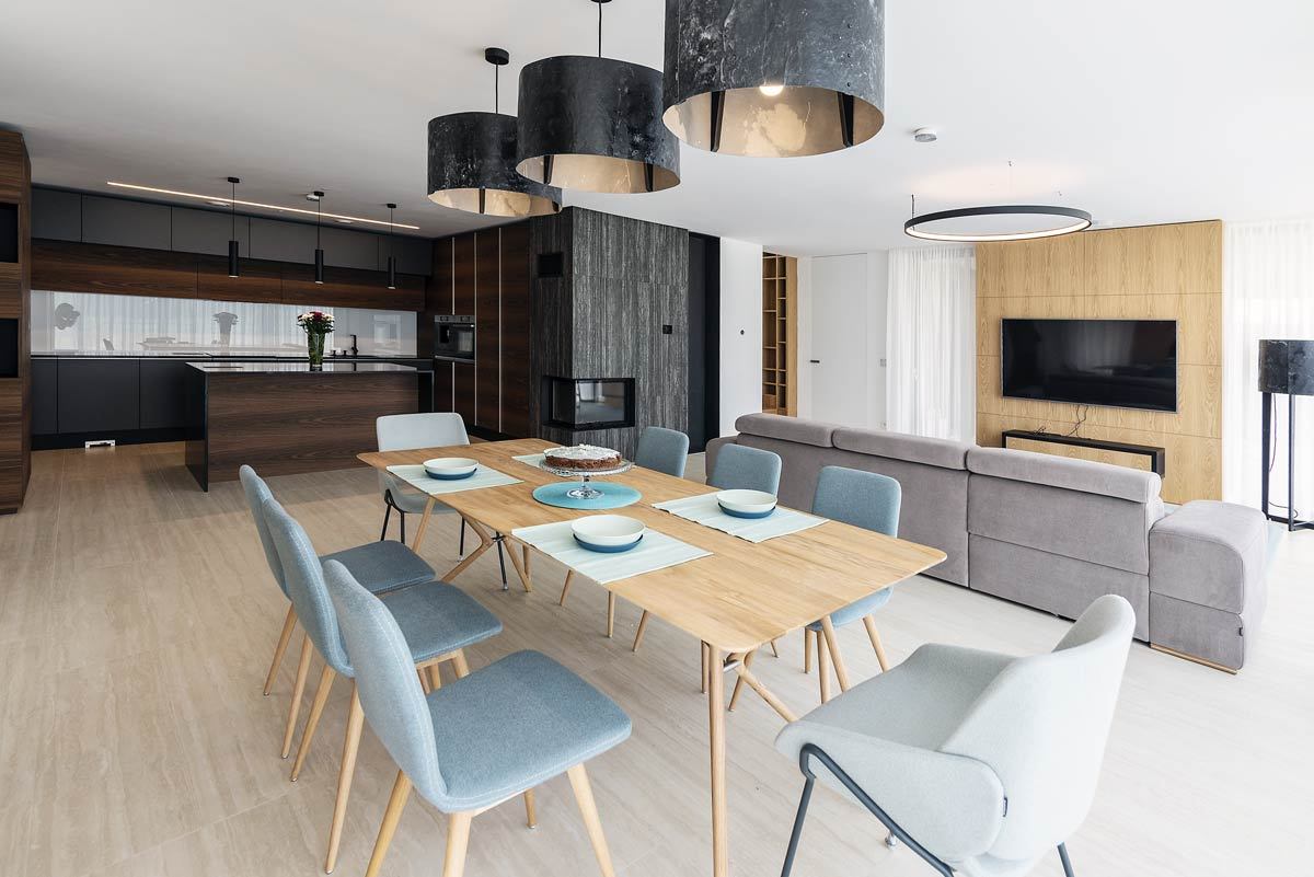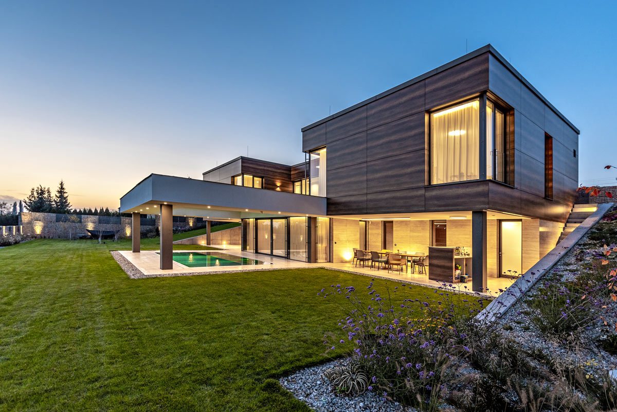 Zadání bylo jasné. Přáli si luxusní dům s promyšlenou dispozicí, nadstandardně pojatým interiérem, velkým otevíratelným prosklením a s maximálním propojením interiéru s exteriérem.