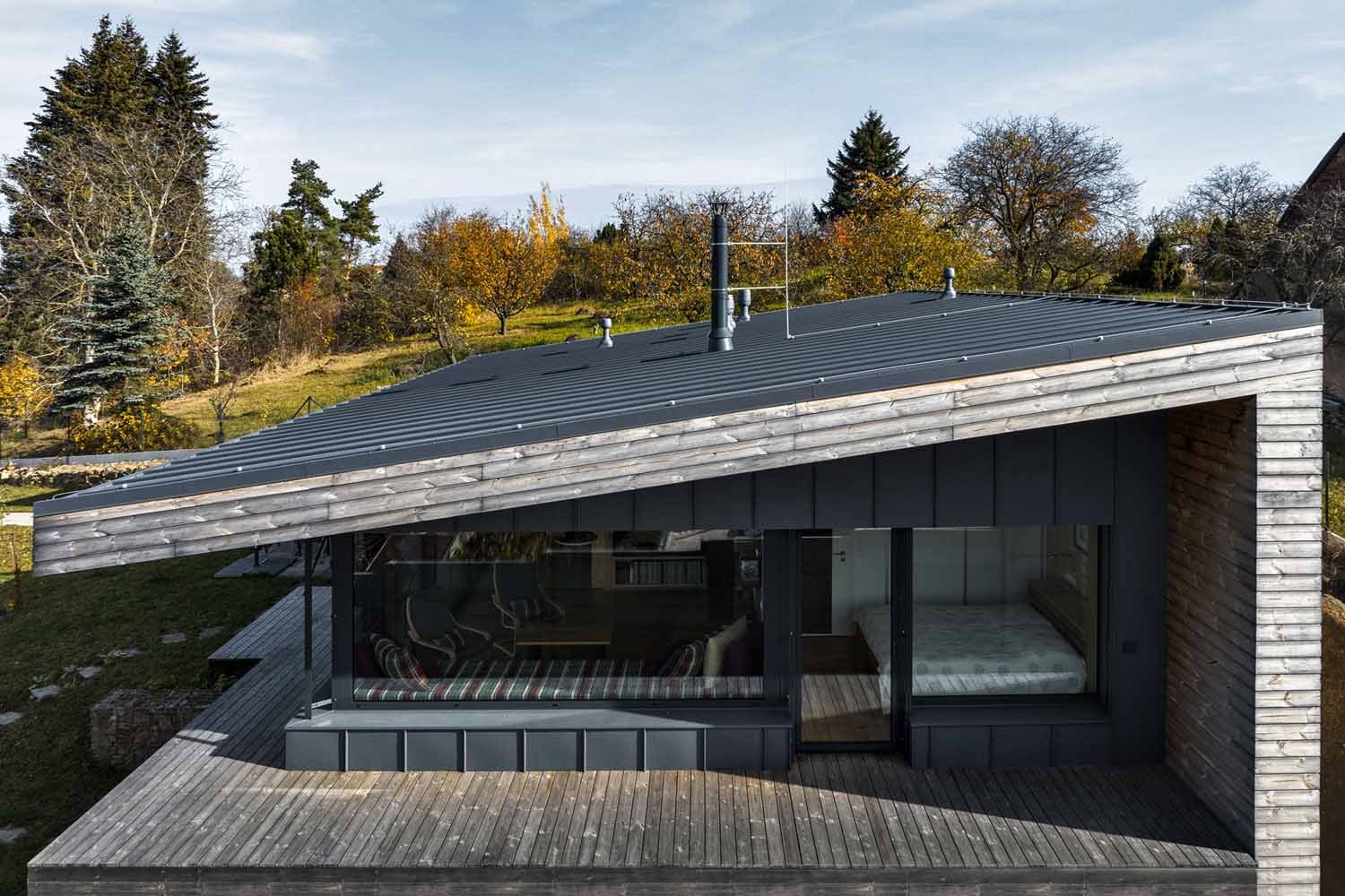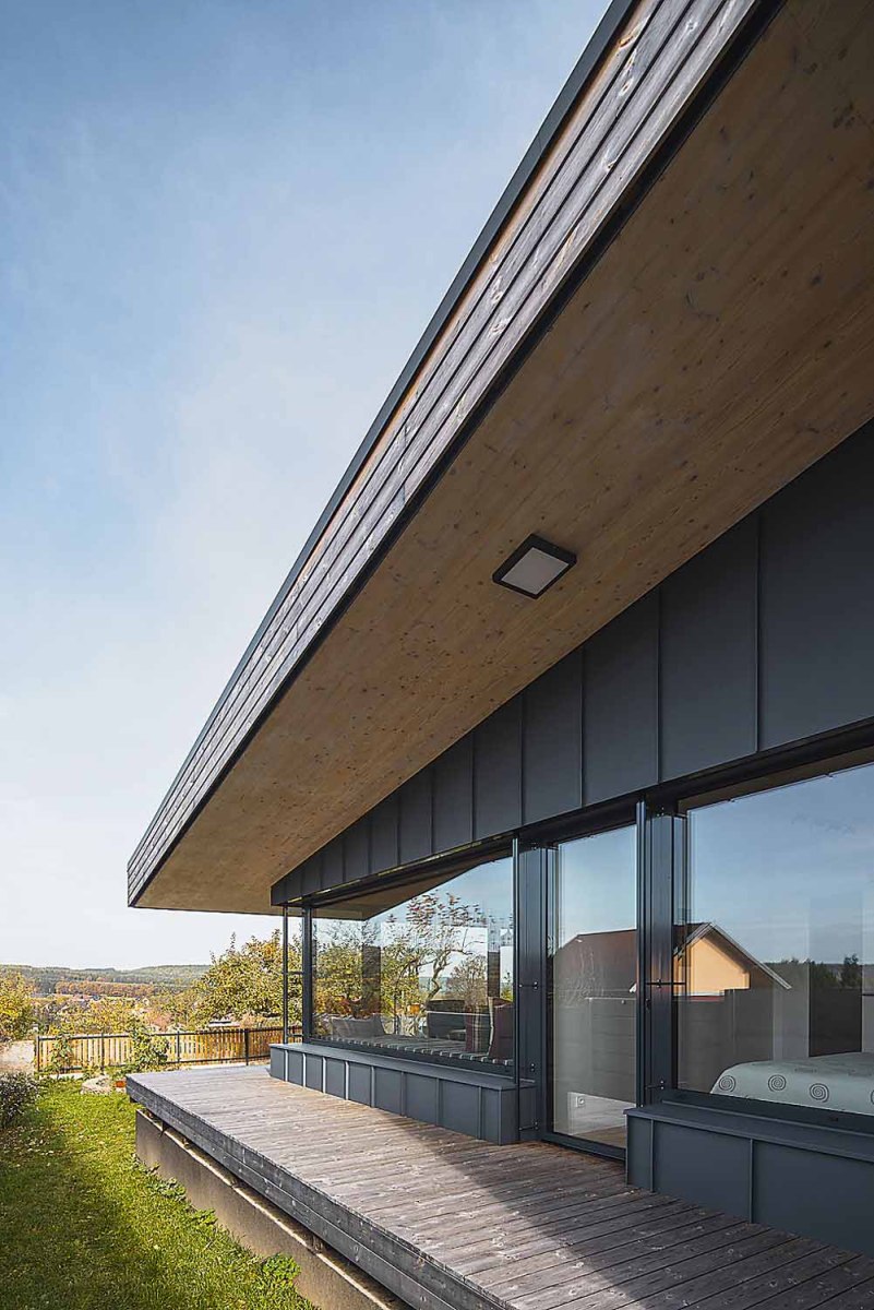 Nevelká dřevostavba na okraji Příbrami se vyznačuje účelným a úsporným řešením. Rohové prosklení má naopak velkorysý koncept a poskytuje unikátní výhled.