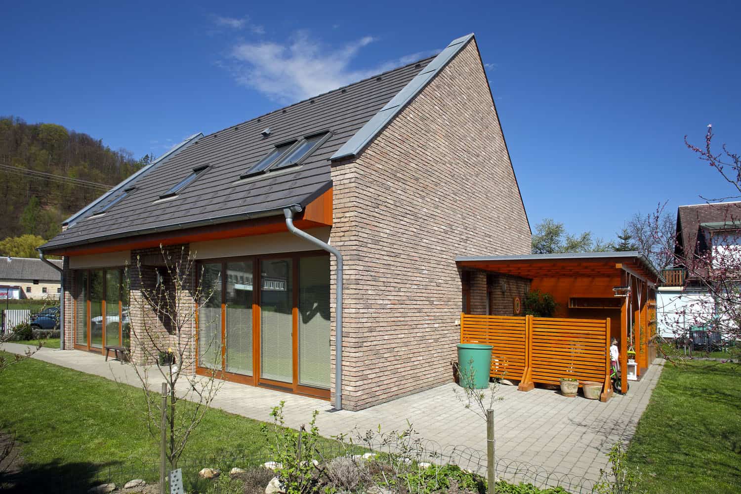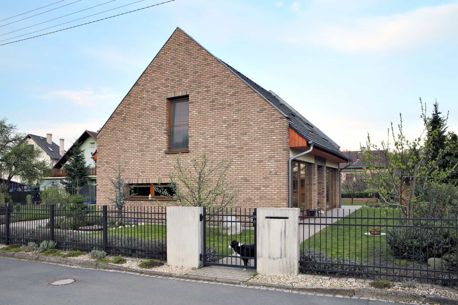 Pozemek byl původně zahradou, což předurčilo výstavbu nového domu. Výběr nezastavěné parcely ovlivnila i nedávná zkušenost majitele, pana Tomáše, z rekonstrukce domu jeho rodičů. „Byl jsem si vědom všech úskalí, nákladů a kompromisů, které s sebou přestavba starého domu nese.“ Vzhledem k nevelké parcele měl architekt, Radim Věntus, za úkol navrhnout prostorné a světlé bydlení moderního charakteru, které má určitý výraz a styl, ale současně i sedlovou střechu, aby dům dobře zapadl do okolí.