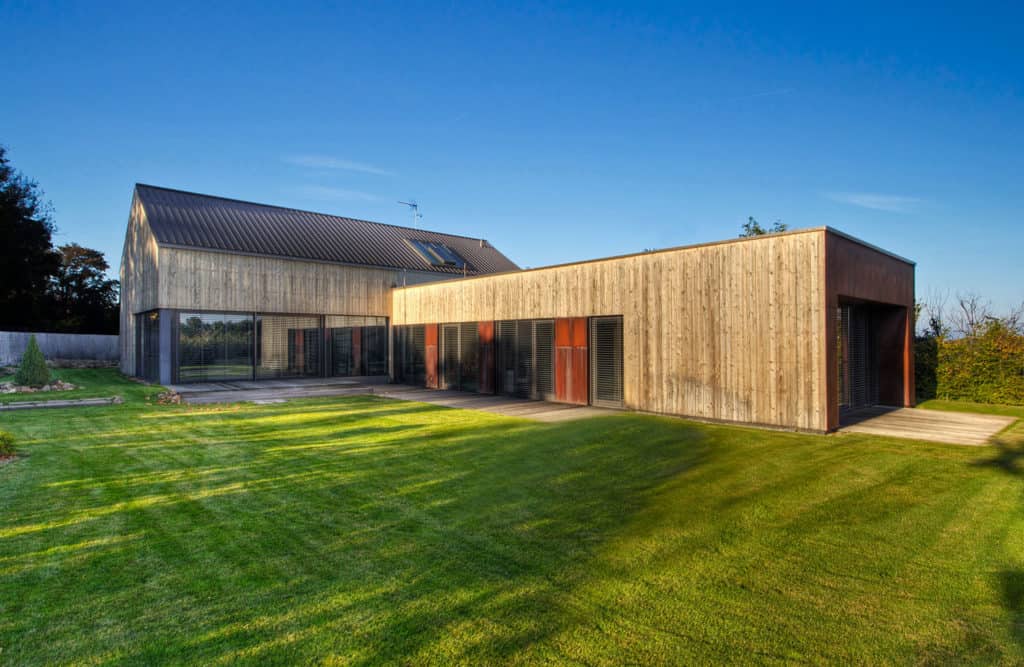 Pod pojmem komfortní moderní bydlení si rodina se dvěma dětmi představovala bungalov, z něhož se dá vyběhnout přímo na trávník do zahrady. Tisícimetrová parcela na rovinatém pozemku na okraji obce nedaleko Prahy, obklopená hezkou novou zástavbou, se zdála pro tuto představu ideální, plány jim ale zkřížil územní plán požadující dům tradičního vzhledu se sedlovou střechou.