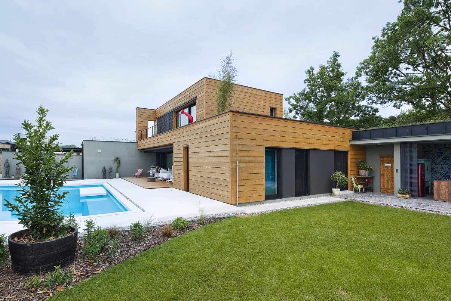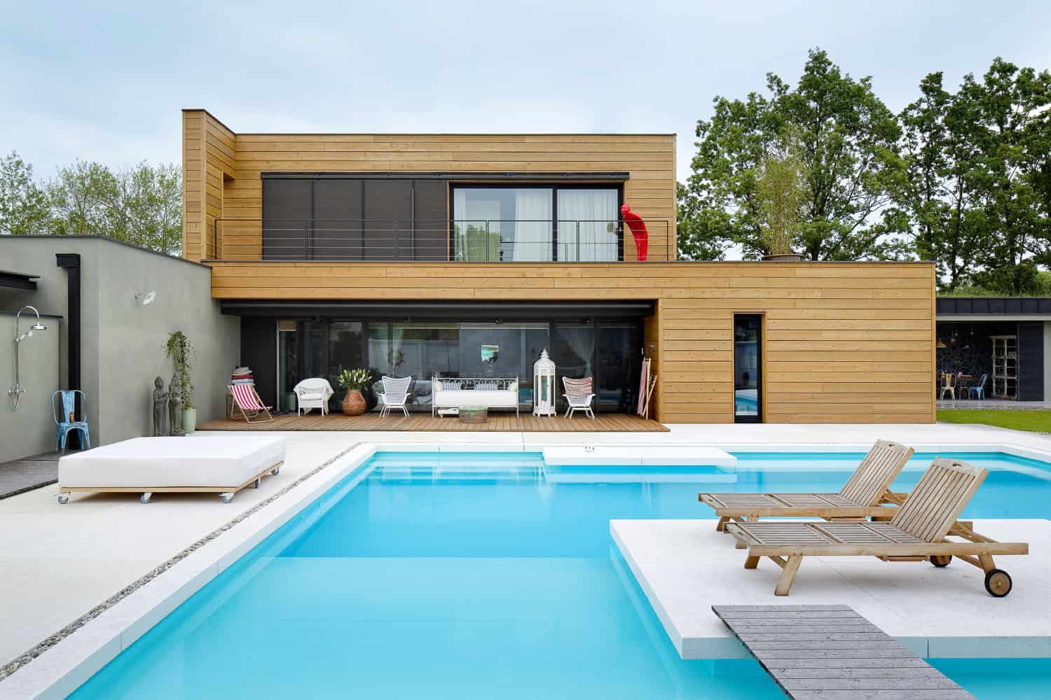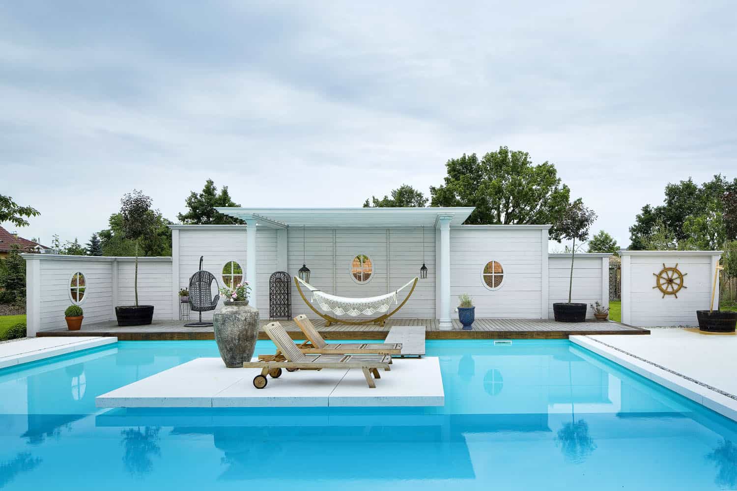 Minimalistický rodinný dům s bazénem a jakoby levitujícím ostrůvkem připomíná vzdálenou exotickou destinaci. Stejně tak velkoryse navržený interiér je na první pohled víc světový než domácí.