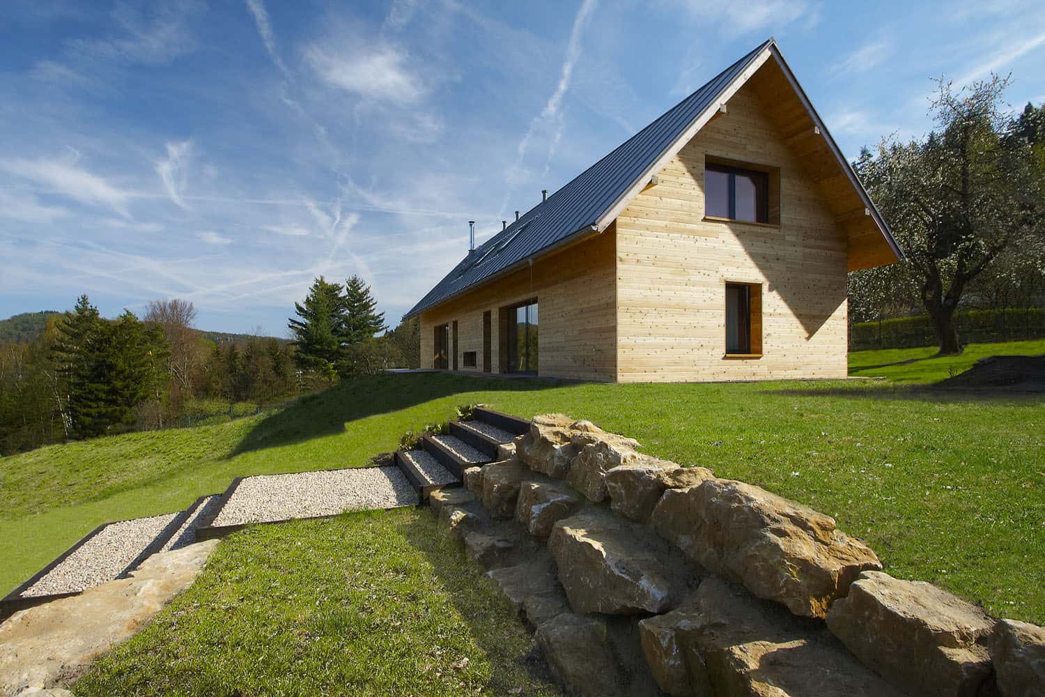 Pozemek leží v chráněné krajinné oblasti Český ráj, v typické malé obci sestávající z chalup zdánlivě náhodně „rozházených“ po údolí a okolních stráních. Přístupová komunikace vede z jižní strany, nejkrásnější výhled směřuje k severu – na les a hory. Stavět v chráněných krajinných oblastech nebývá jednoduché a potvrzuje to i zkušenost autorské dvojice Stempel – Tesař ze stejnojmenné pražské architektonické kanceláře. „Stavět jako naši předkové již dnes samozřejmě nemůžeme, nicméně právě jejich řemeslný um a tradice určily charakter výstavby na mnoho dalších desetiletí. Požadavky CHKO v podstatě vzhled nového domu určují od celkového tvaru až do posledního detailu,“ říká architekt Ján Stempel.