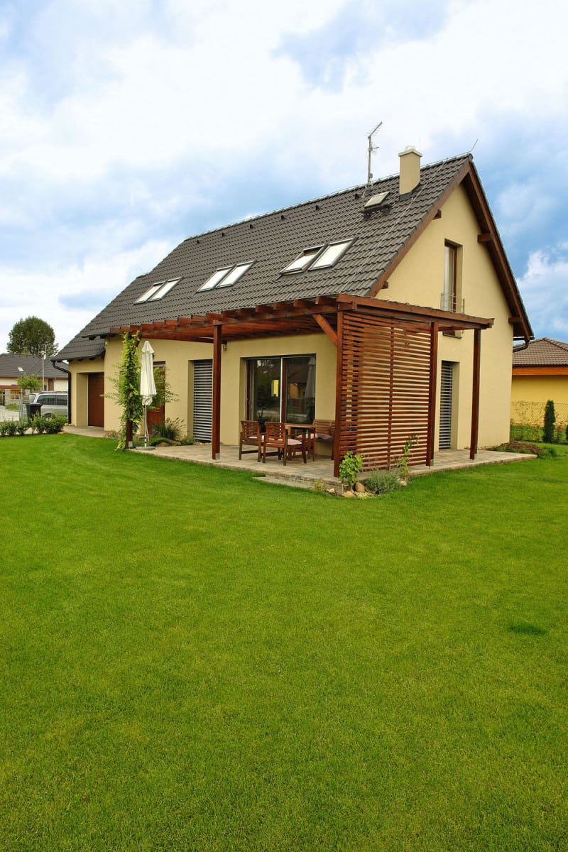 Typový rodinný dům Bonus Plus, který si z nabídky společnosti G Servis CZ vybrala mladá čtyřčlenná rodina, vychází vzhledově i proporčně z tradiční venkovské stavby. Inspirací však veškerá podobnost končí. Projekt pracuje s moderními materiály a prvky, dispoziční řešení zcela odpovídá nárokům na komfortní bydlení podle současných trendů.