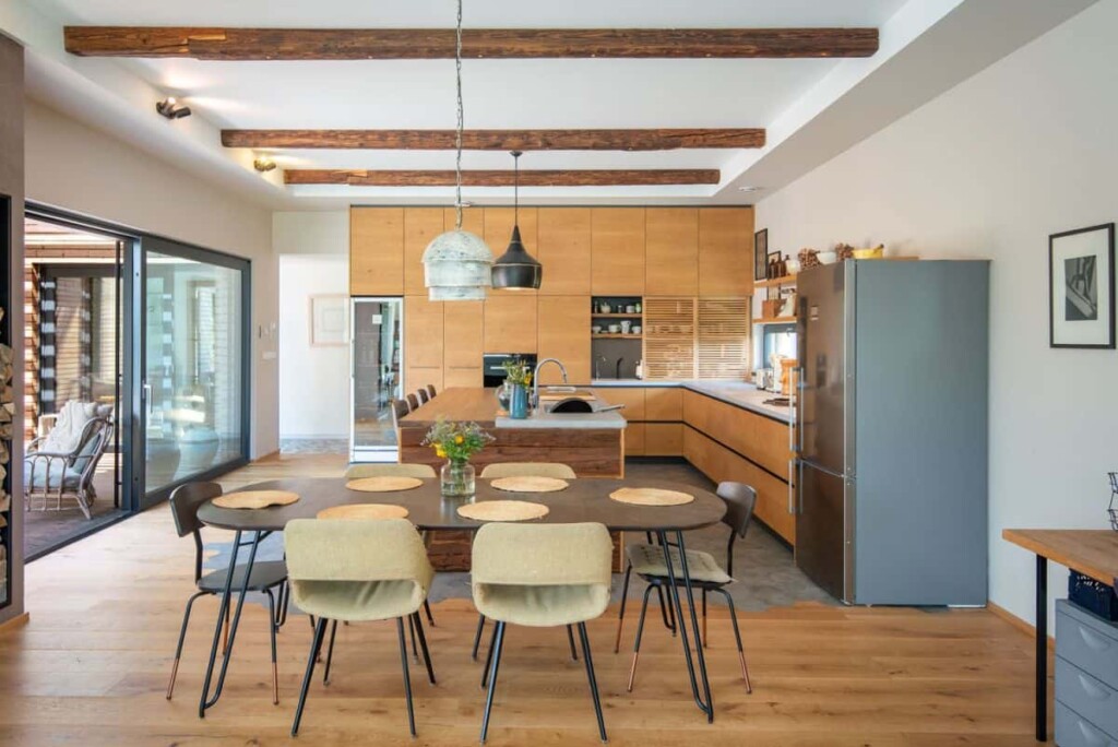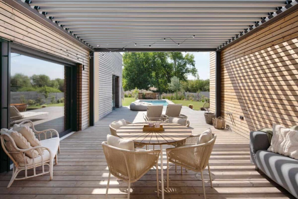 Když se spojí čistá architektura, přírodní materiály a důraz na rodinné pohodlí, vznikne domov, který je nejen krásný na pohled, ale i dokonale funkční. Tento dům se skladem, terasou a bazénem je ideálním zázemím pro rodinu se třemi dětmi.