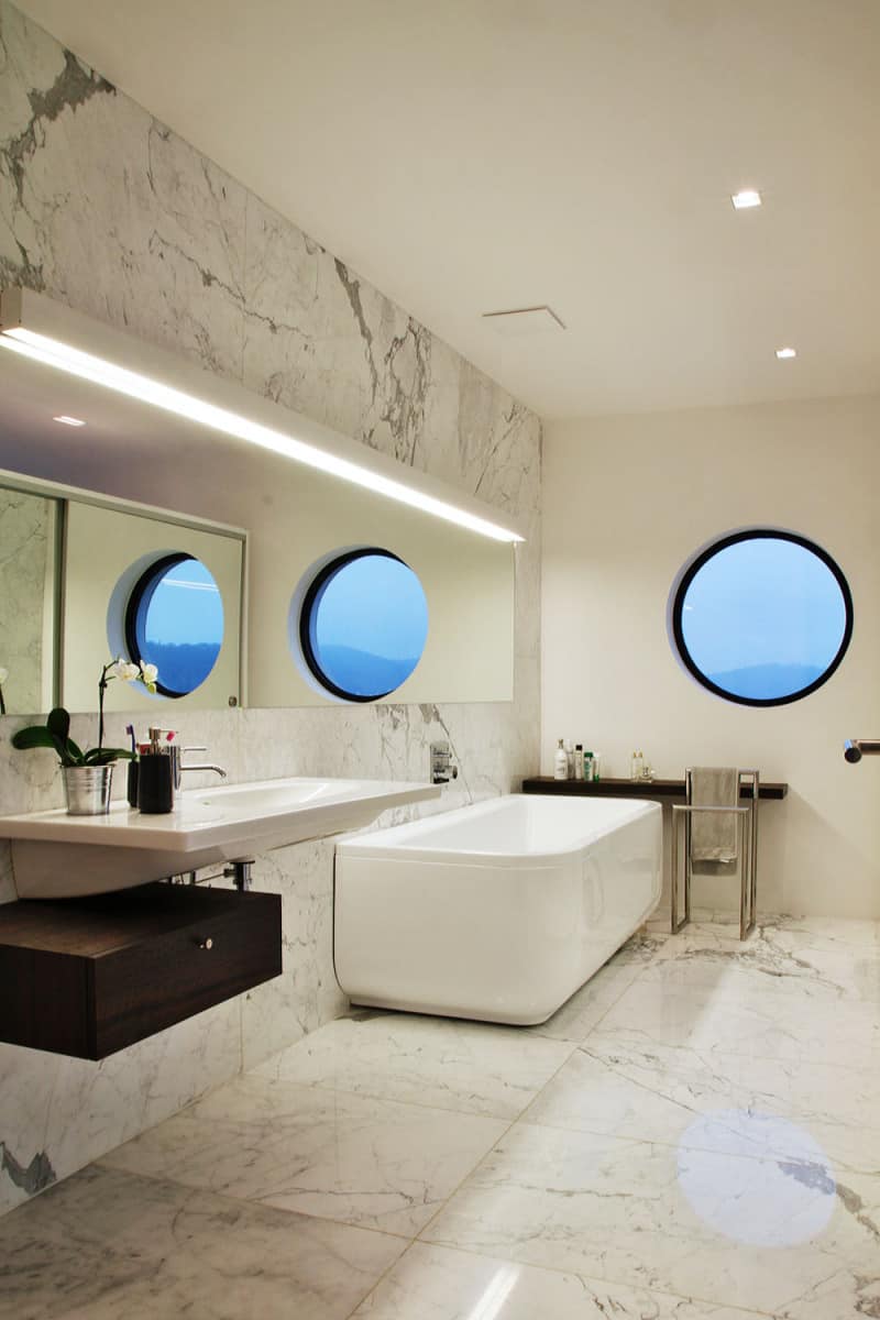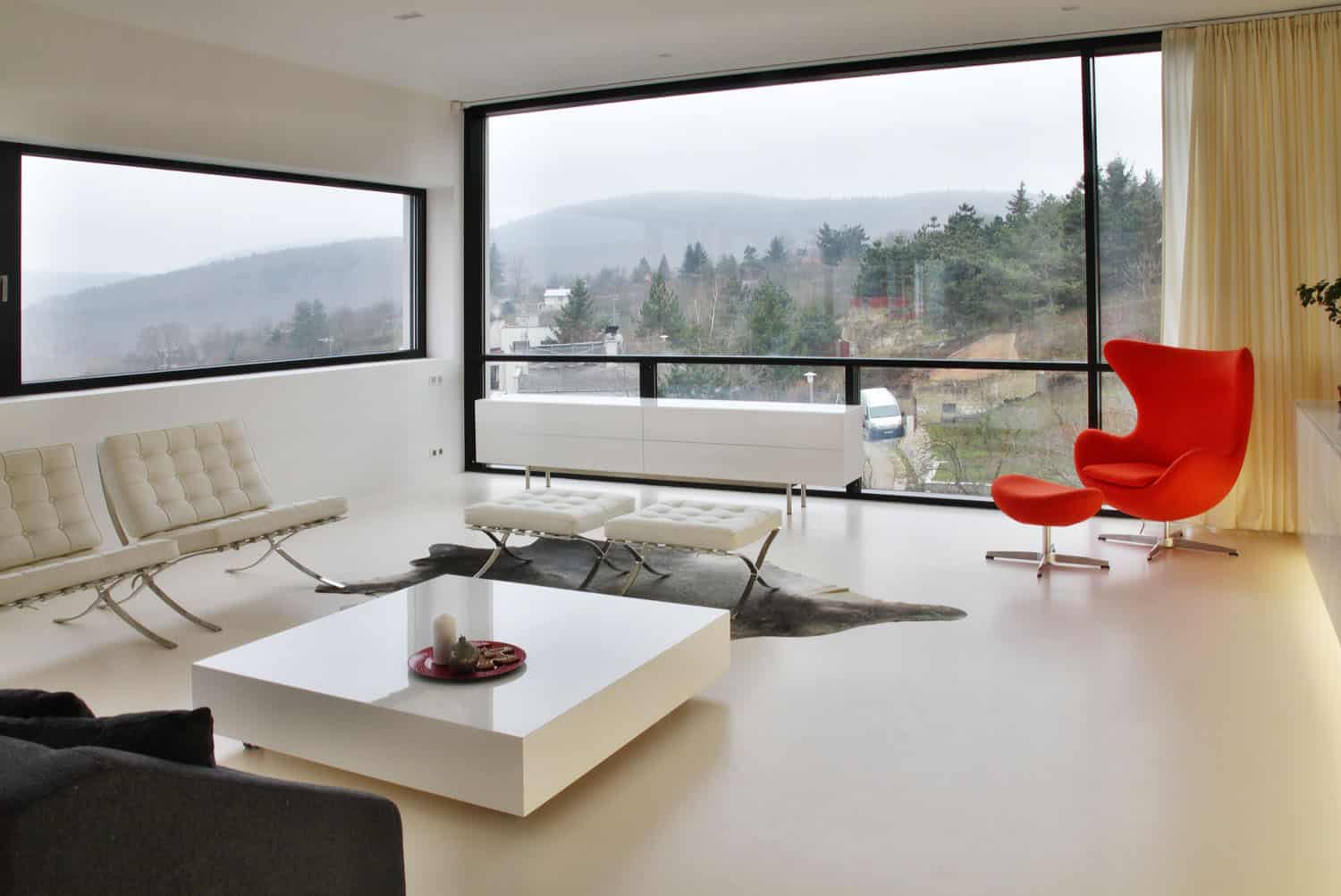 Architektura unikátního domu, rozvinutého do výšky, vychází ze složitých terénních podmínek, snahy maximálně využít výhled, který se zde nabízí, a ctít funkcionalistickou tradici. Uvnitř jsme našli příjemný, přehledně uspořádaný prostor a praktické bydlení.