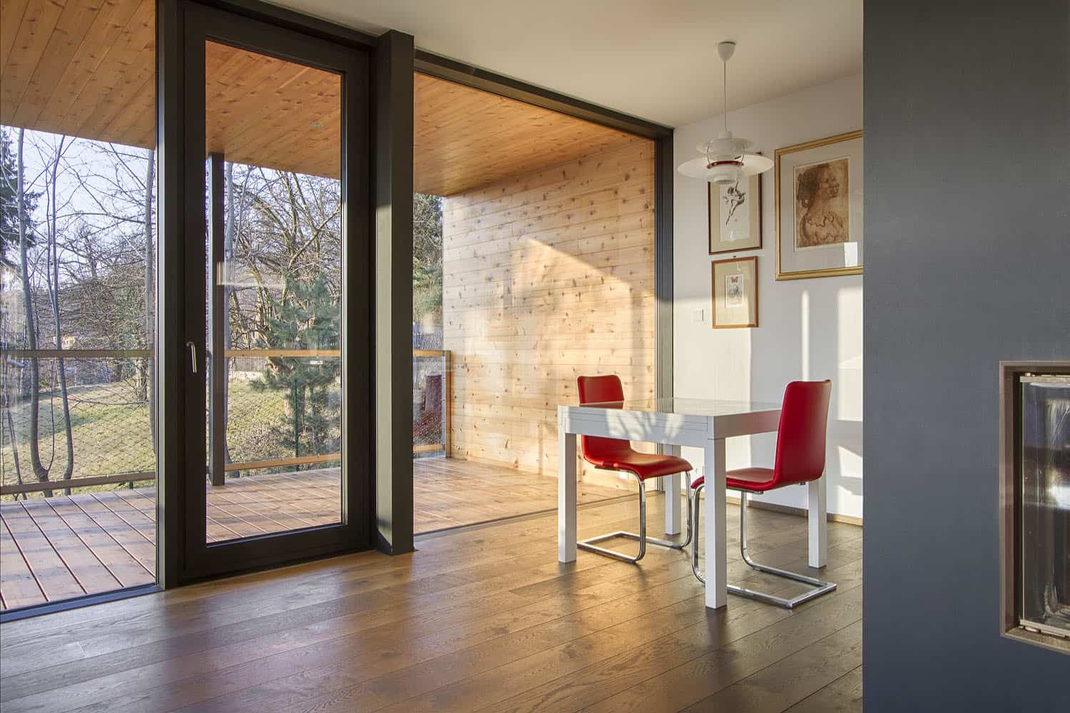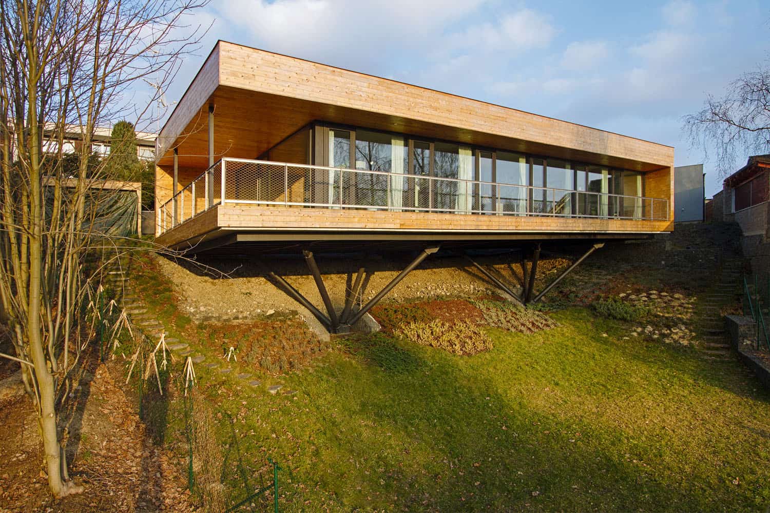 Dům ve svahu nad malým severočeským městem nabízí řadu unikátů: výhled, neobvyklé konstrukční řešení a provoz s minimální spotřebou energie.