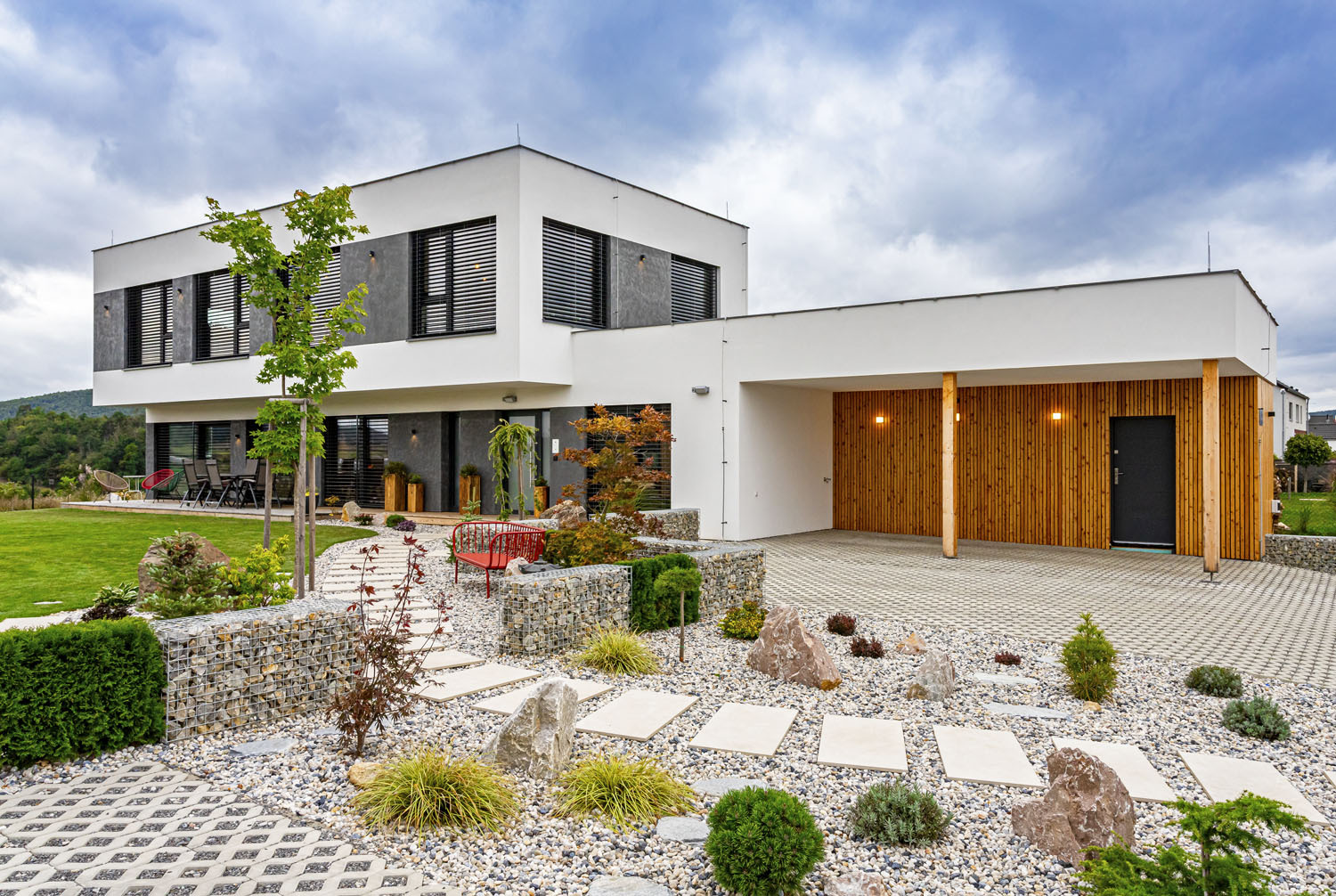 Jedná se o variaci na typový dům LUCERN 176 s úpravami velikostí a některých detailů. Dvoupodlažní stavba s elegantní architekturou moderní městské vily vás uvnitř překvapí útulnou atmosférou – v jejím návrhu se totiž vzájemně doplňují věcný praktický přístup a principy feng-šuej.