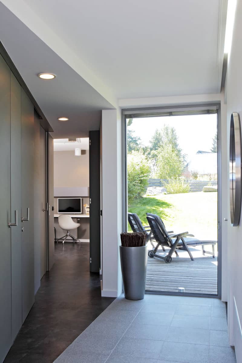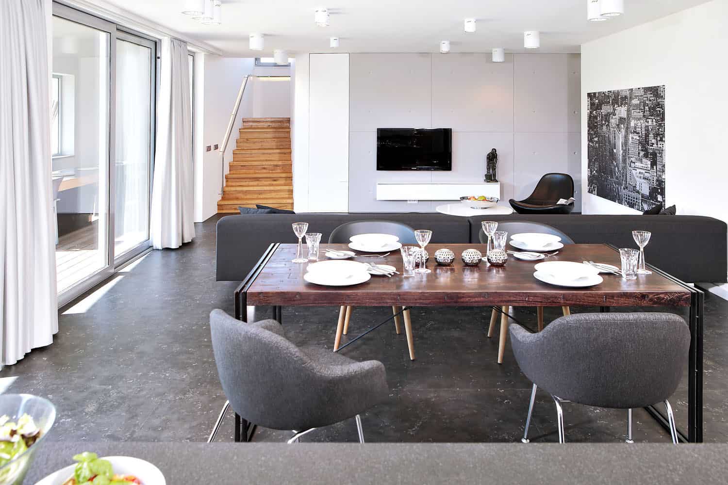 Majitelé bydleli v prostorném bytě v nedalekém městě. Původně plánovali stavbu domu na dobu, kdy jim ubudou pracovní povinnosti, nakonec ji ale zrealizovali dříve. Stavět se začalo na volné parcele v rozvojové části obce, která se nachází v chráněné krajinné oblasti.