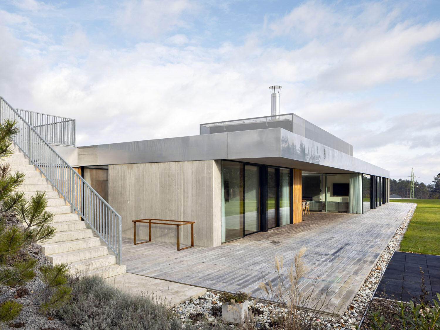 „Zadáním byl jednopodlažní dům v maximálním kontaktu se zahradou, výhledy na les ze všech obytných místností, zachování soukromí,“ uvádí architekt Martin Paulíny, spoluautor návrhu. „Klienti si přáli dobře prosvětlený, ale i účinně stíněný interiér propojený s obytnou terasou. Po praktické stránce odolný dům s minimálními nároky na údržbu. Od tohoto požadavku se odvíjela skladba materiálů – jednoduchá, syrová, bez vrstvených povrchů a složitých detailů.“