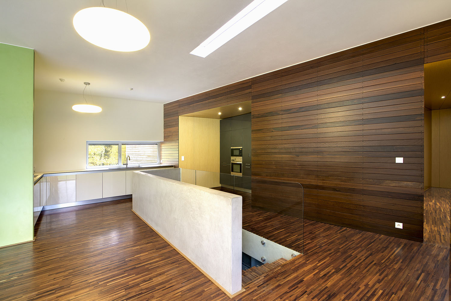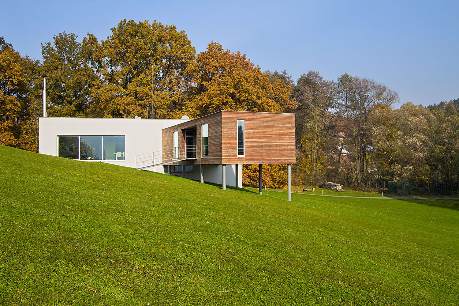 Hektarová louka v mírném údolí na okraji města, lemovaná ze tří stran listnatými stromy, měla mít původně zcela jiný osud, i když byla podle územního plánu stavebním pozemkem. Majitel si přál jej prodat a koupit parcelu na odlehlejším, klidném místě mimo dosah města, vadila mu sousední chatová zástavba. K jihu se však otevírají krásné pohledy na protější svahy, zvedající se od řeky Dřevnice. Architekt Michael Hofman jej přesvědčil, že klidné bydlení v soukromí v náručí přírody se dá realizovat i zde.