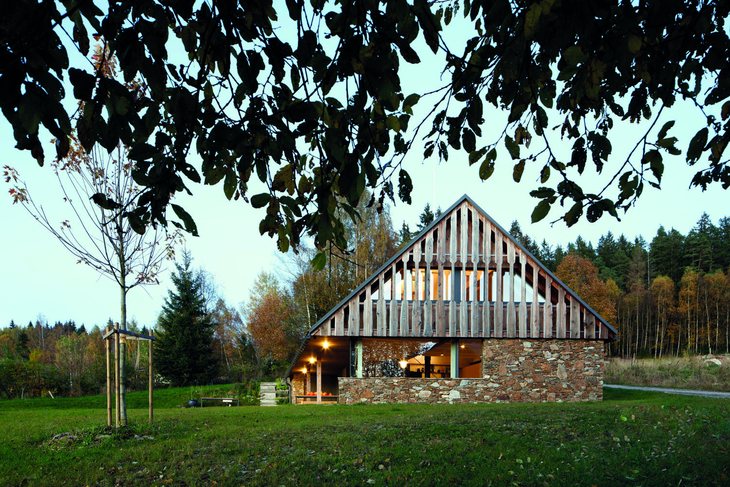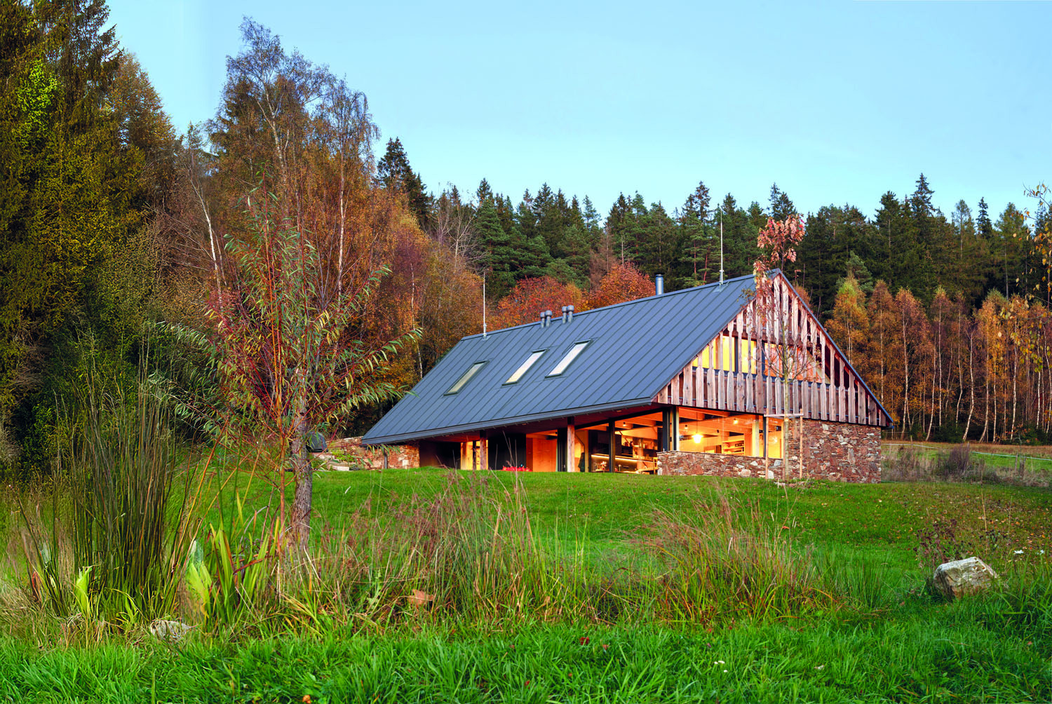 Autoři této novostavby zvolili tradiční a místní materiály, ale využili je tak, aby vytvořili podmínky pro bydlení v současném komfortu. „S klienty se známe dlouho, byli jsme tedy už na počátku jejich úvah. Šumava byla jednoznačnou volbou, rodina tu má své kořeny a krajina nabízí množství mimořádně autentických míst. Nejdříve přemýšleli o rekonstrukci, ale nakonec dospěli k novostavbě; staré domy mají kromě jiného své limity, například poměrně malou výšku stropů. Bývá těžké dostat je tam, kam potřebujeme…,“ říká architekt Adam Jirkal.