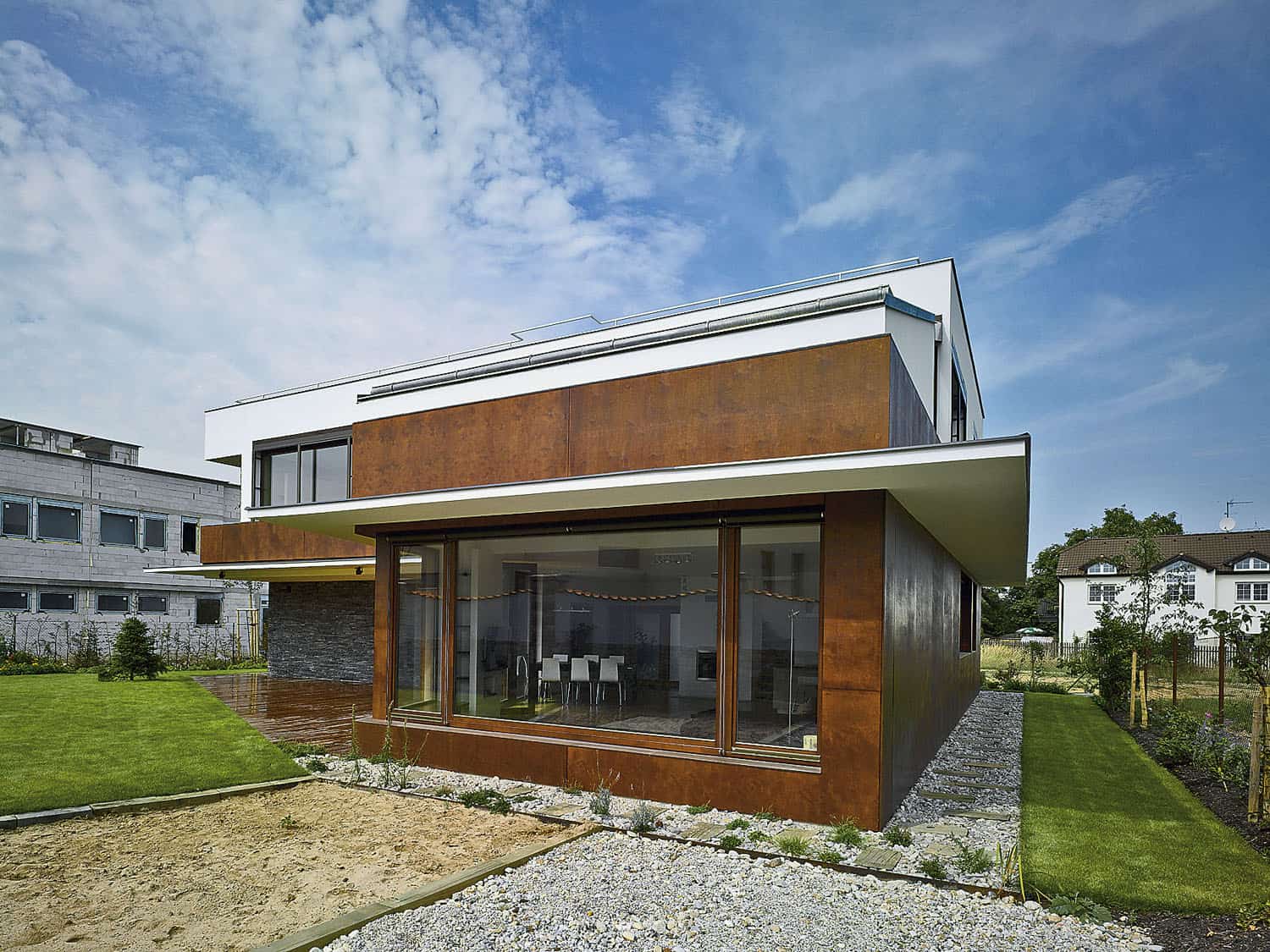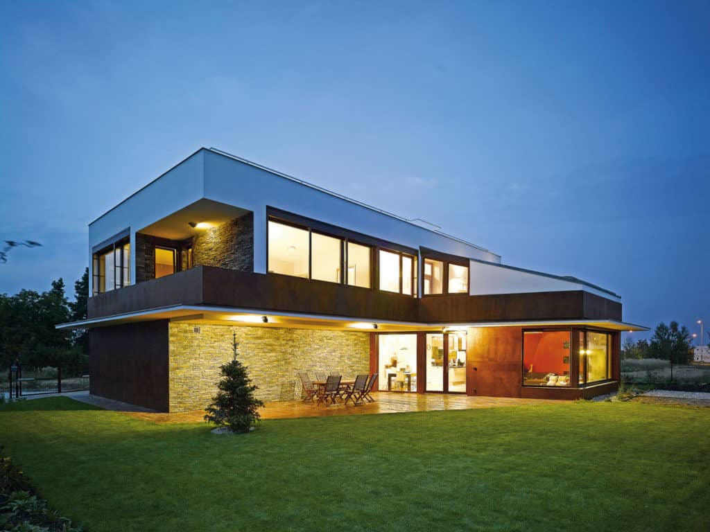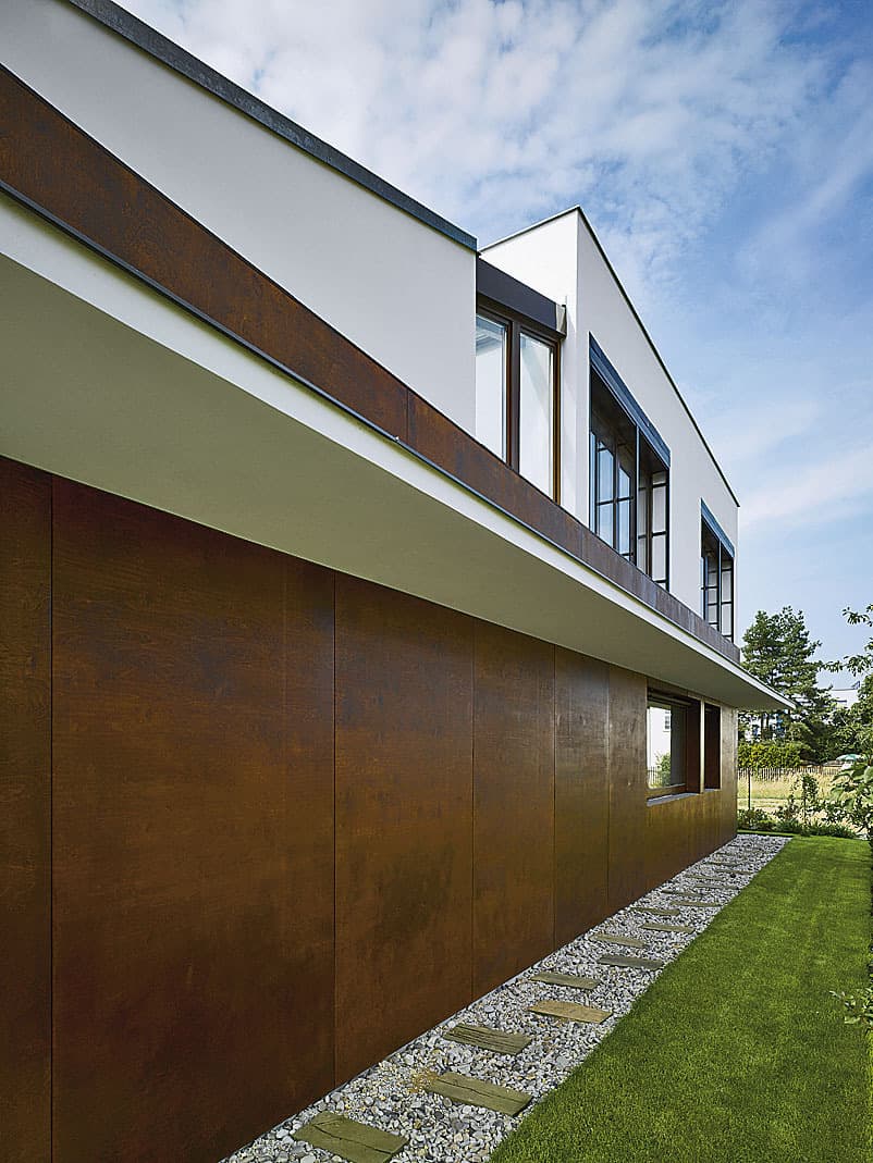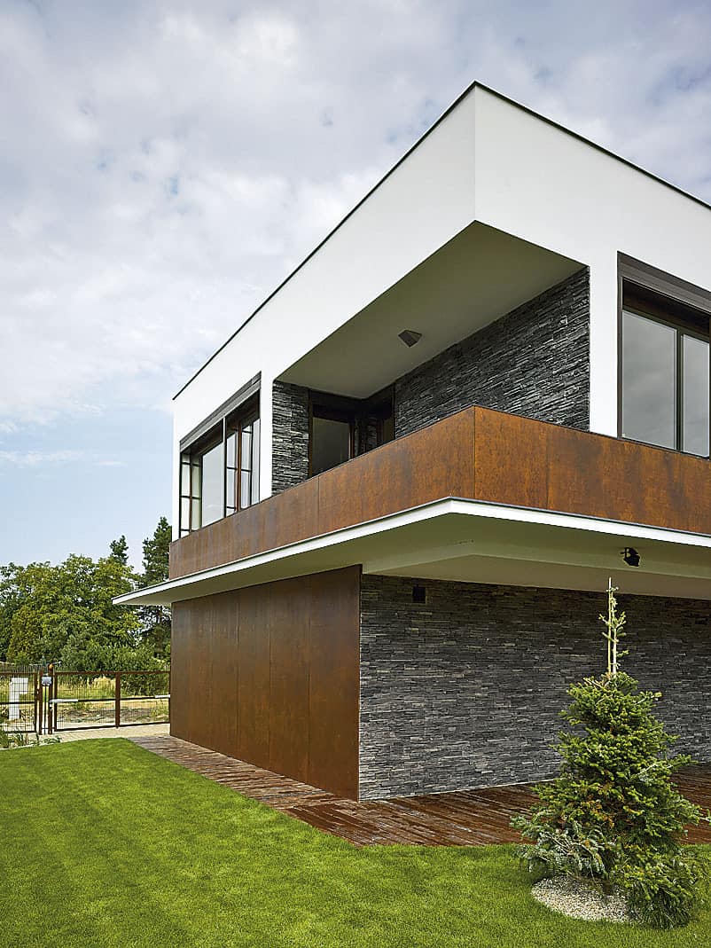 Napohled střízlivě elegantní dům na rozhraní starší a nové obytné zástavby na okraji Prahy se vyznačuje nadstandardní dávkou originality i vnitřní pohody.