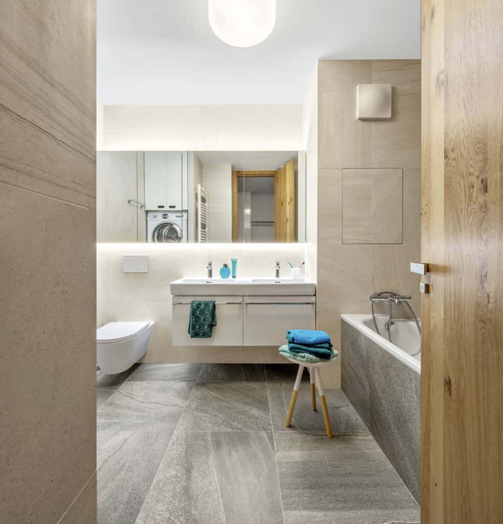 Při zařizování v novostavbě i při rekonstrukci můžete v malé místnosti bez problémů použít některý z větších formátů, například 30 × 60, 30 × 90 či 60 × 60, 80 × 80, 60 × 120 cm, a také kombinovat různé velikosti nebo čtverce s obdélníky. Dosáhnete tím praktické i estetické výhody. Velký formát opticky zvětší prostor, protože pokládka s minimální tloušťkou spáry neruší hladkou plochu, výsledný vzhled je tedy celistvější. Zároveň velký formát působí luxusnějším dojmem, umožní zvýraznit barvu a strukturu povrchu, což nahrává aktuálnímu trendu 3D povrchů či imitací přírodních materiálů. Počítejte ale s jednou podmínkou, že podklad stěn a podlah pro velkoformátový obklad je nutné kvalitně připravit a vyrovnat.