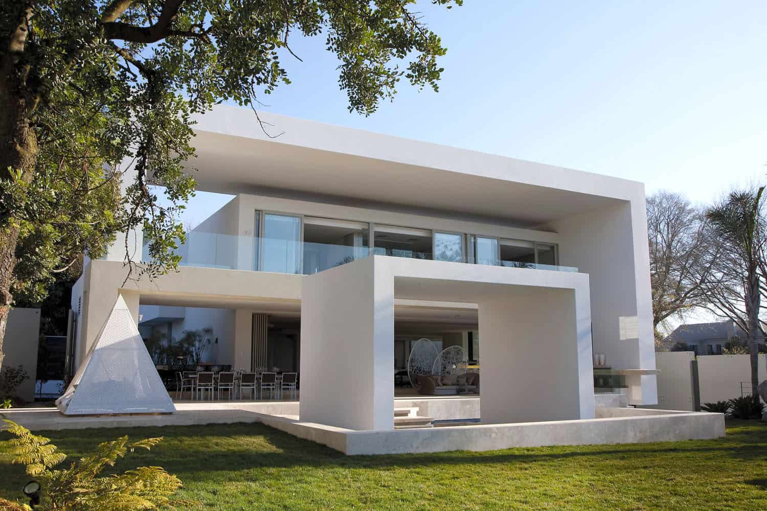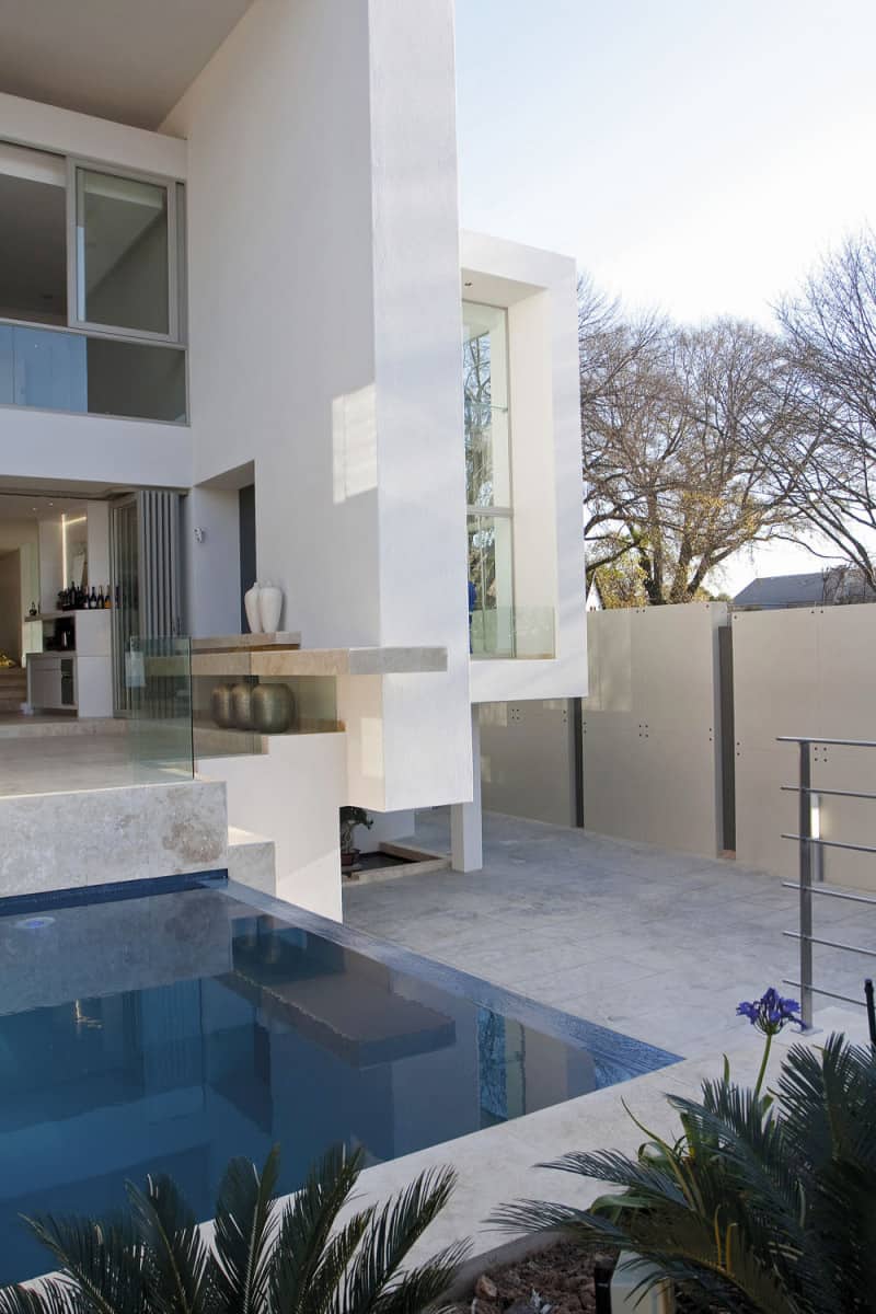 Dům, postavený v luxusní čtvrti hlavního města Jihoafrické republiky, získal díky jednoduchému geometrickému tvaru monumentální ráz. Interiéru naopak vládnou hravé tvary, přinášející do velkého prostoru hřejivost domova.