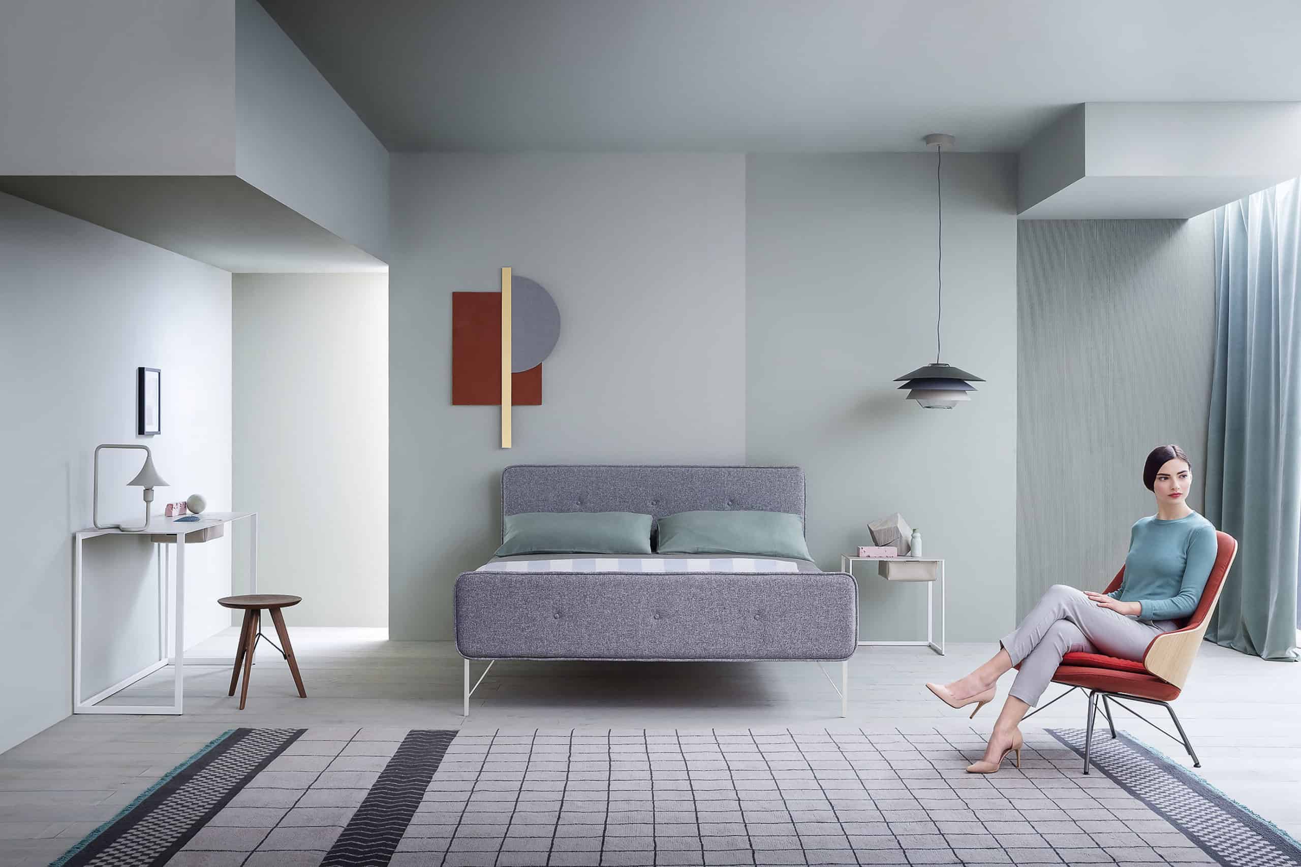 Postel 1715 HotelRoyal tvoří subtilní konstrukce z lakované oceli s textilním či koženým potahem, který je k dispozici ve více barvách, design Terri Pecora, Zanotta, cena na dotaz, www.zanotta.it