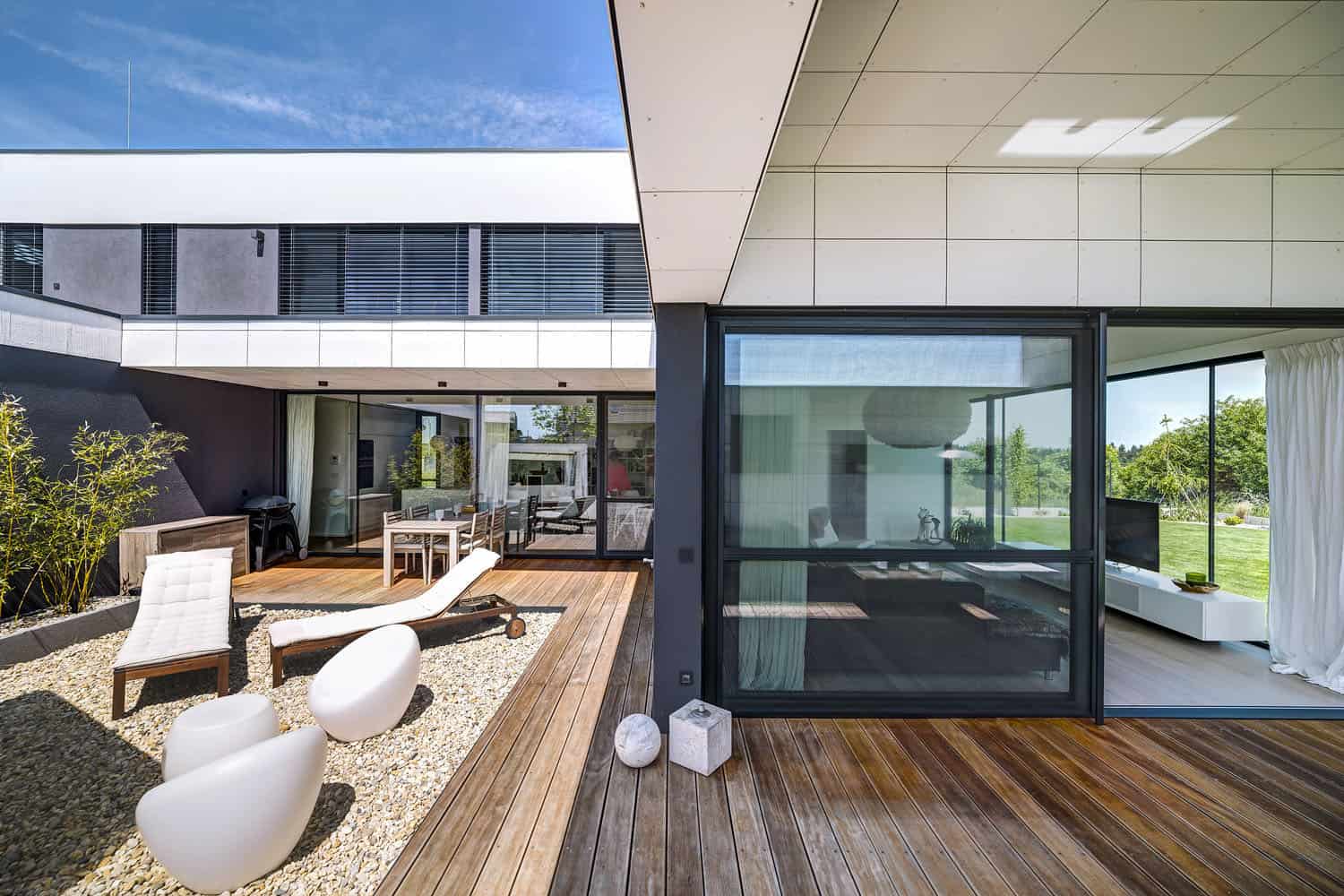 Inspiraci k novému bydlení našli u svých sousedů. Dům, který navrhli architekti z bratislavského ateliéru Molnár – Peráček, s. r. o., se jim tak líbil, že když se po nějaké době rozhodli stavět, neváhali tyto architekty oslovit. „Každý den jsme chodili kolem moderní dřevostavby, která krásně splývala se vzrostlými borovicemi.Obdivovali jsme otevření do přírody, volnost a skandinávskou eleganci, kterou tento dům vyzařoval, a už tenkrát před lety jsme si říkali, že takto bychom chtěli také bydlet,“ vysvětluje na úvod majitel domu.