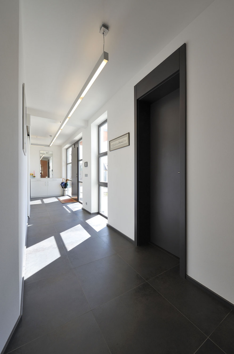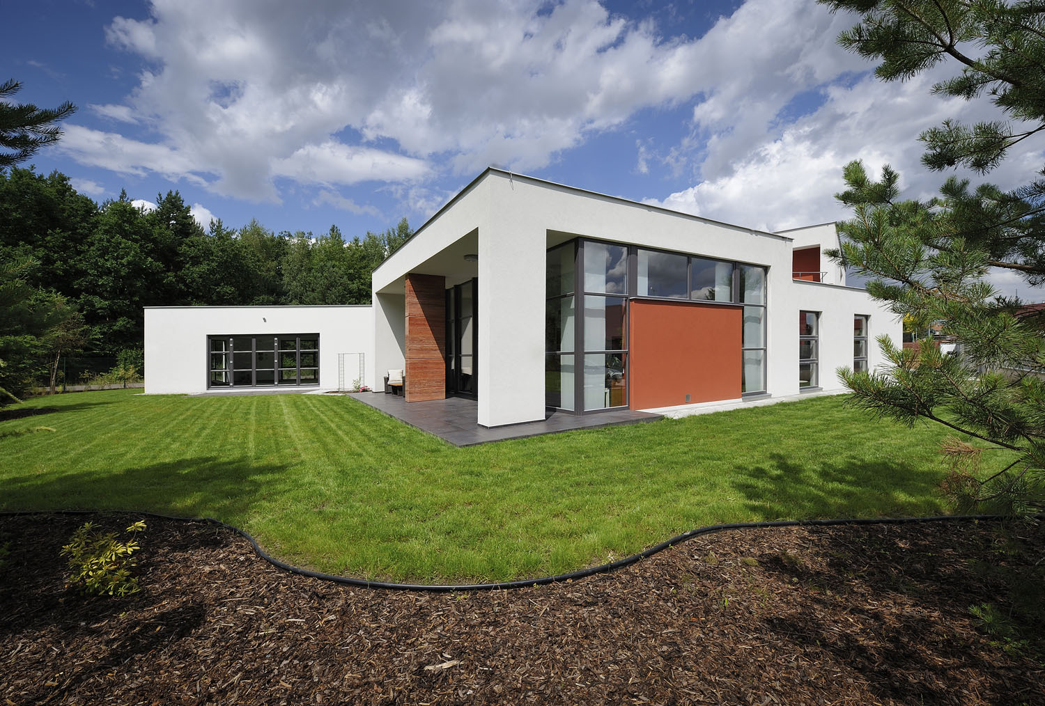 Pozemek v klidné nové čtvrti, na konci slepé ulice, se budoucím majitelům hned zalíbil, zákoutí u lesa vyzařovalo klid a pohodu na čerstvém vzduchu. Původně tu plánovali malý bezbariérový bungalov. „Architekti z ateliéru RAM projekt nás ale překvapili zcela moderním a odvážným návrhem, který nás zaujal. Po dvou letech jsme se nastěhovali do komfortní vily a bydlí se tu skvěle,“ vysvětlují majitelé domu.