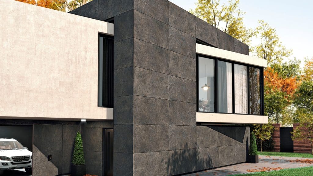 Dlažba Thinbig Ambiente Stone Negro ve formátu 120 x 240 cm je žáru a mrazuvzdorná, odolná proti poškrábání, chemickým látkám a také UV záření. Dá se použít i v interiéru (ROCA)