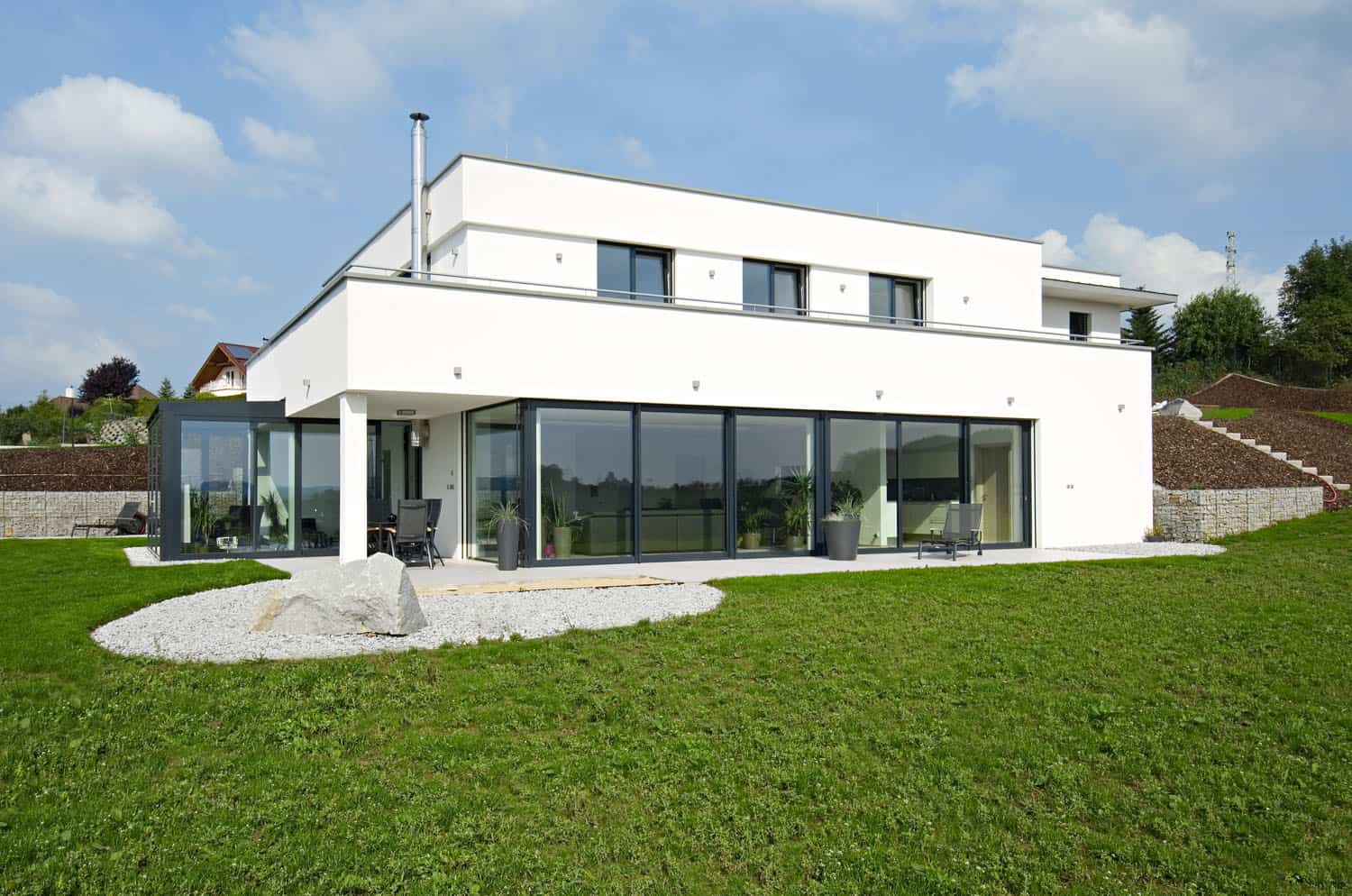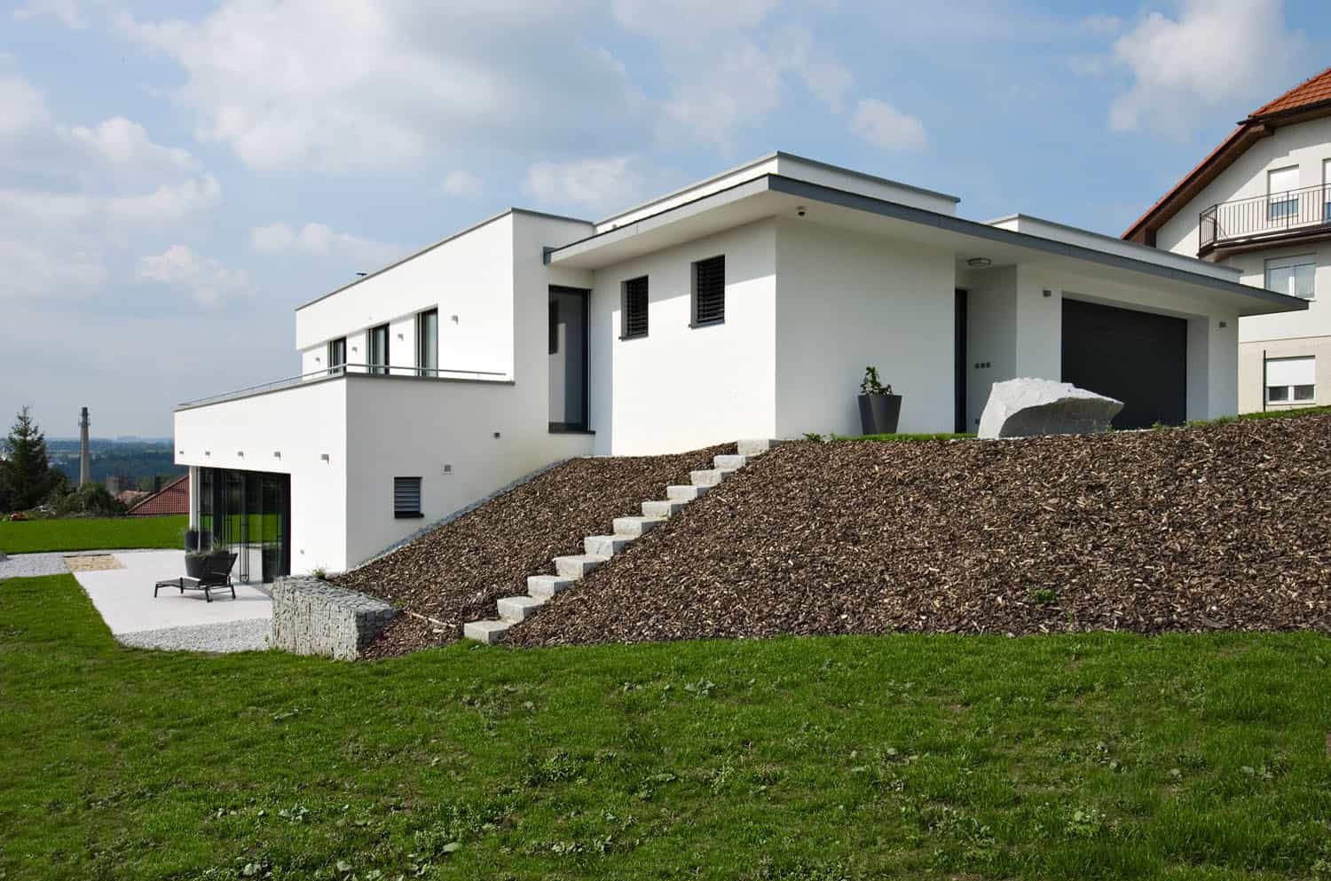 Od 90. let zde byly velmi přísné regulativy. „Naštěstí se postupně změnila místní legislativa a spolu s tím se vytvořil prostor pro změnu poptávky. Katalogová řešení již nejsou jedinou možností zdejší výstavby,“ říká Ing. Karel Kupec z projekční a inženýrské kanceláře Studio A. „Ve chvíli, kdy se v takové situaci objeví dům jasného jednoduchého střihu, má zákonitě problémy. Po čase se ale povědomí lidí začíná měnit. Zvyknou si a nacházejí v čistotě stylu pozitiva. Počáteční boje pak mohou ustoupit,“ dokončuje vyprávění architekt. Rozhodující silou, která pomohla ustát počáteční reakce, bylo přesvědčení manželů o právu žít v domě podle svého vkusu a vytvořit domov, ve kterém se budou cítit dobře bez ohledu na názor ostatních.