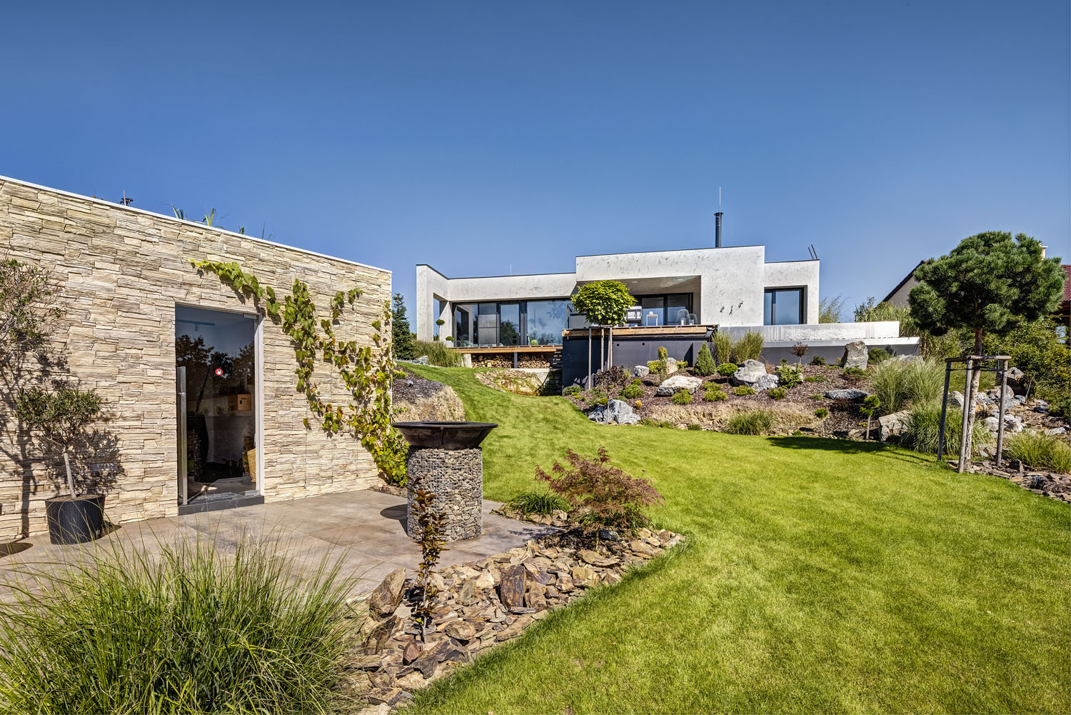 „Pozemek jsme si vybrali na konci března 2017 a hned nato jsme během jediného dne vytvořili základní skicu umístění objektu, jeho základní dispoziční řešení včetně zónování zahrady, tedy kde bude dům, kde bude jezírko s přítokem, kde bude hlavní plocha vzrostlé zeleně neboli – jak my říkáme – les,“ vzpomíná architekt Hlaváček.