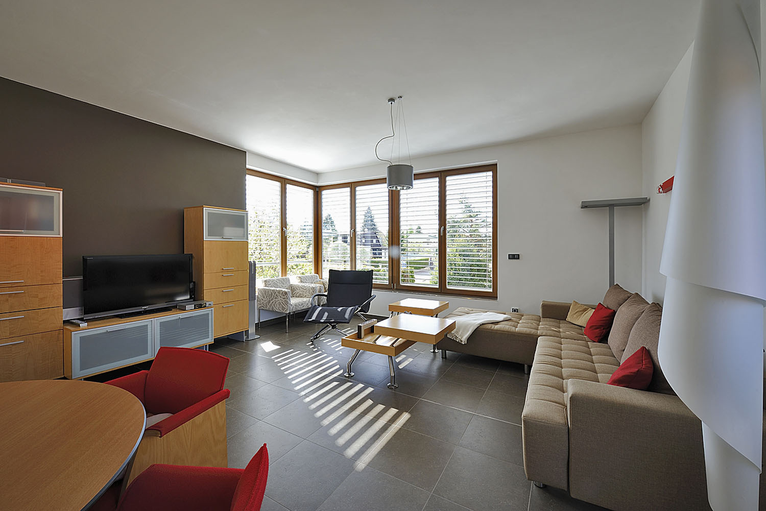 Elegantní dům postavený na okraji Prahy zvenku nijak nenaznačuje, že se vymyká dnes běžnému schématu s obývacím pokojem otevřeným do zahrady a ložnicemi v patře. Neobvyklá dispozice dokonale naplňuje pojem individuální bydlení na míru.