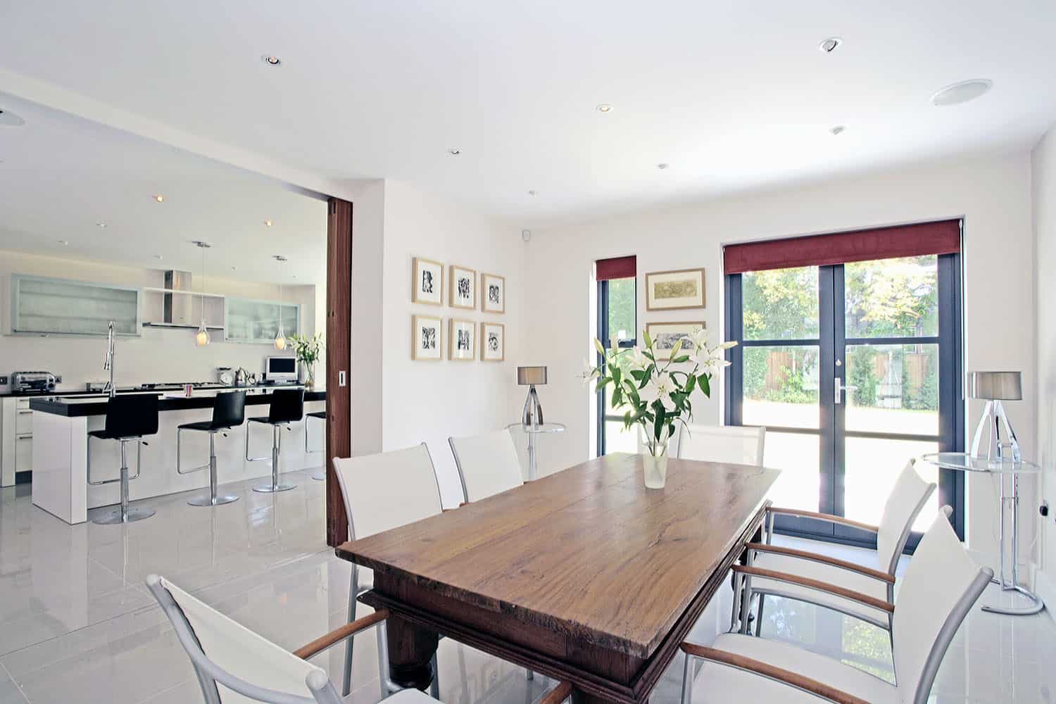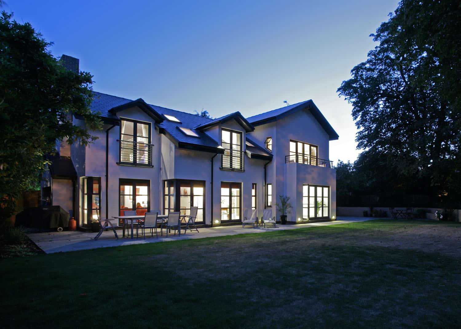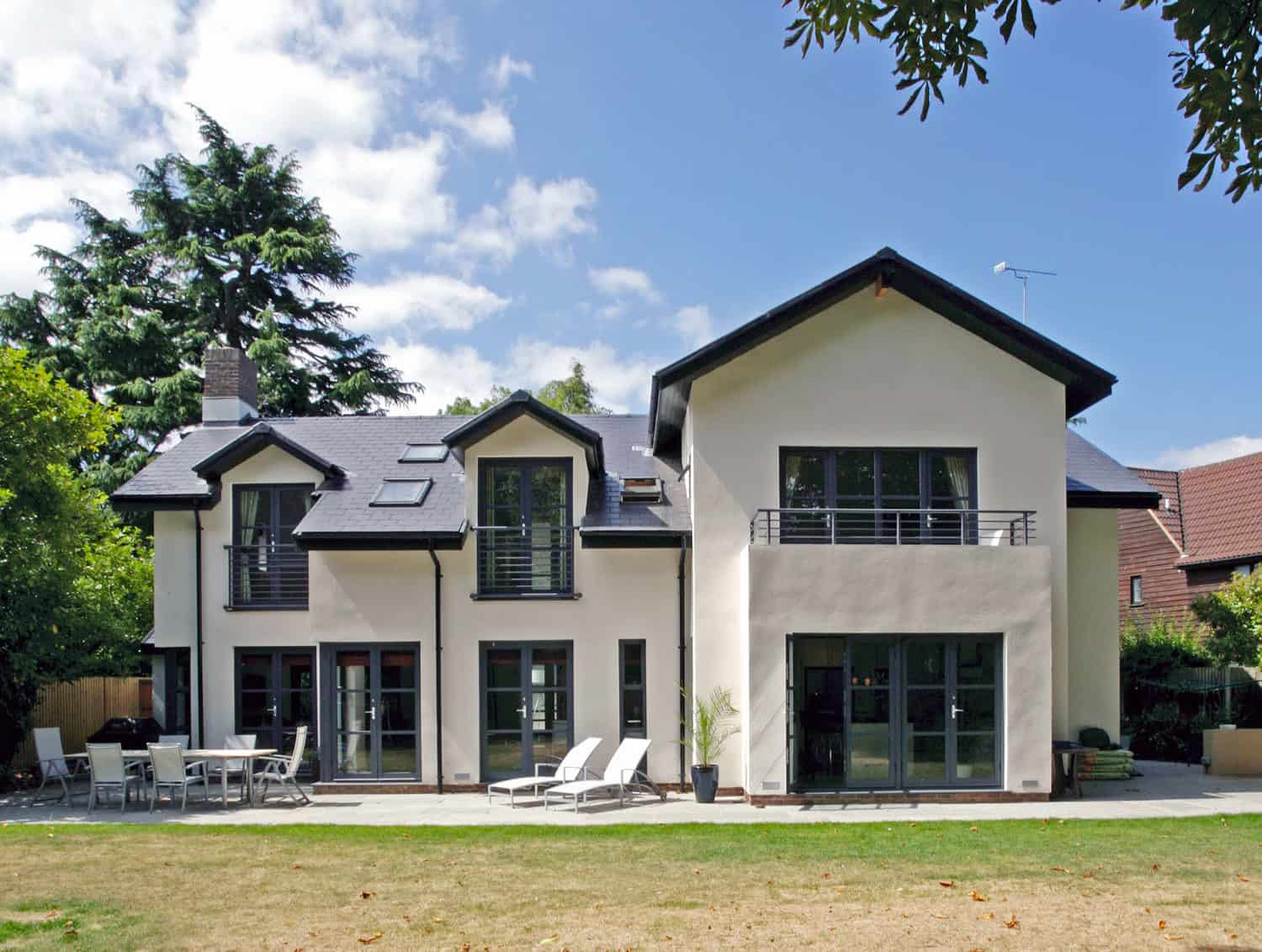 Tradiční střechy, štíty a vikýře ve spojení s hladkými fasádami a prosklenými plochami působí moderně, ale útulně. Majitelům domu nedaleko Londýna se podařilo skloubit členitost s jednoduchostí, starobylost s moderností tak, aby vzniklo příjemné bydlení na úrovni 21. století.