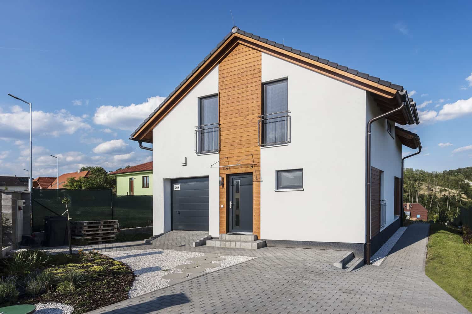 Dřevostavba, patrový dům, dům na malém pozemku |