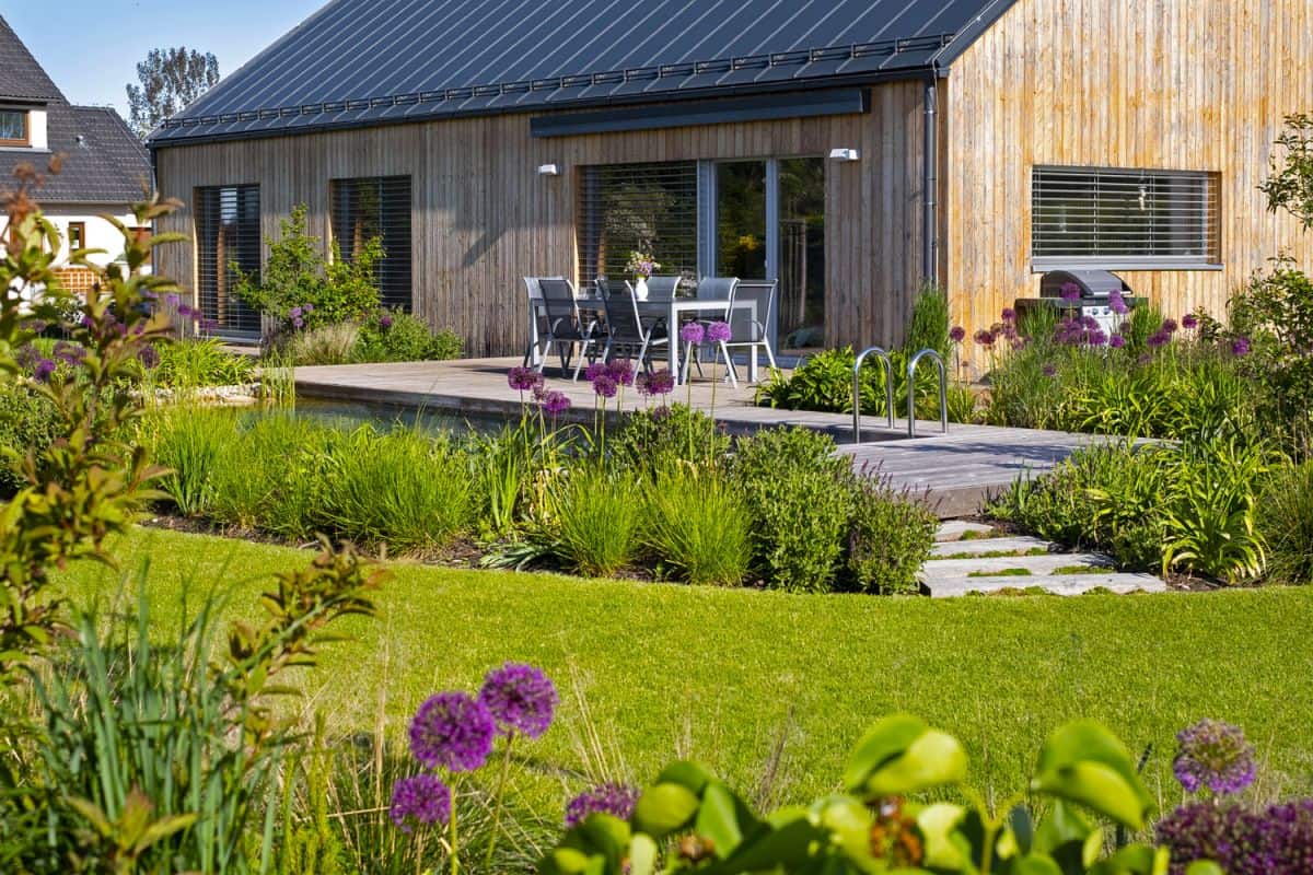 Srdcem života je koupací biobazén navazující na terasu, kostrou jsou nově vysazené listnaté stromy, keře a trvalky vyplňující spodní patra. Kromě okrasných rostlin jsou na zahradě i aromatické a užitkové rostliny obklopující zejména zahradní sezení s otevřeným ohništěm.