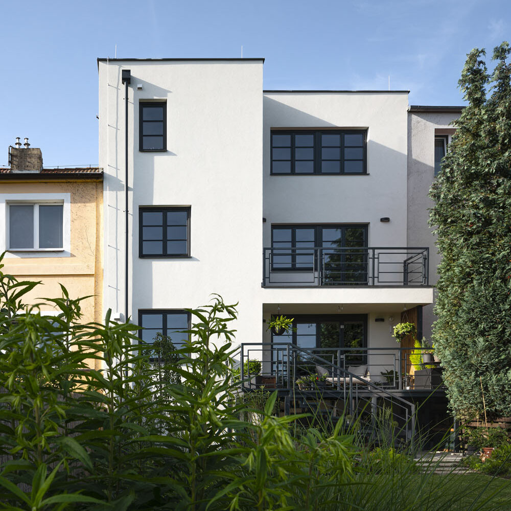 Pracovně vytížená rodina se třemi dětmi se rozhodla zakotvit v jedné ze starších pražských čtvrtí. Zakoupili řadový dům ze sedmdesátých let minulého století, který splňoval jejich představy o velikosti a příjemné lokalitě, ale vyžadoval celkovou rekonstrukci. Obrátili se na studio No Architects, které posunulo kvalitu bydlení o několik tříd výše.