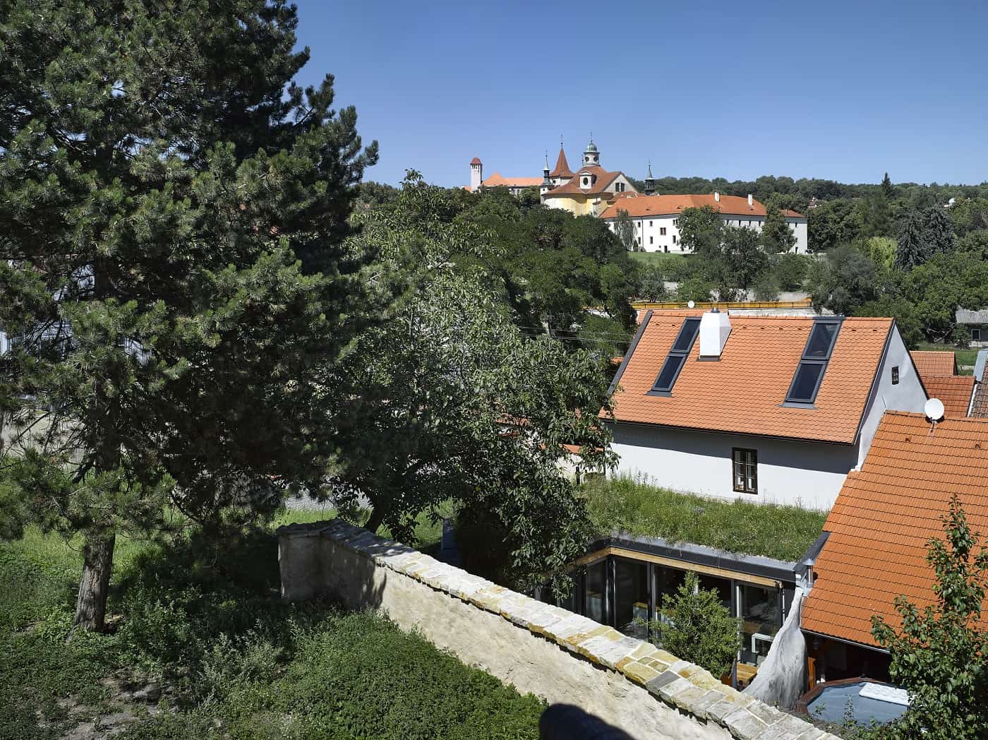 V ulici u historických hradeb ve Slaném minete starý dům, jehož rekonstrukce vzbudí úctu, zvláště u těch, kdo ho znají z předchozí doby. Stačilo málo, aby tu už nebyl. Ale vstoupíte-li dovnitř, žasnete – historické prostory dokonale slouží současnému bydlení, navazují na ně nově vybudované místnosti otevřené do dvora. Jsou plné světla, setkávají se tu krásné materiály včetně starých kamenných zdí. Autoři je společně s investory zakomponovali do interiérů jako jeden z nejdůležitějších výtvarných prvků.