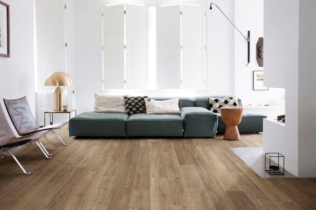 Díky patentované technologii Quick-Step Uniclic a Uniclic Multifit můžete podlahu položit do obývacího pokoje i vlastními silami jediným zacvaknutím (QUICK-STEP)