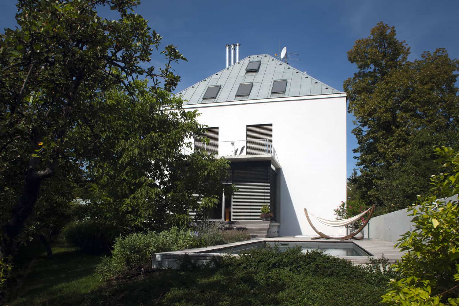 Vícegenerační vila z roku 1928 se zahradou v klidné pražské čtvrti se během let měnila, byla rozdělena na více bytů a pozemek byl postupně doplněn o garáže a zahradní sklad. Přáním majitele bylo zrekonstruovat stávající dům, vytvořit dva plnohodnotné byty v současném standardu, využít přitom půdní prostor a propojit spodní byt se zahradou pomocí přístavby v prvním patře.