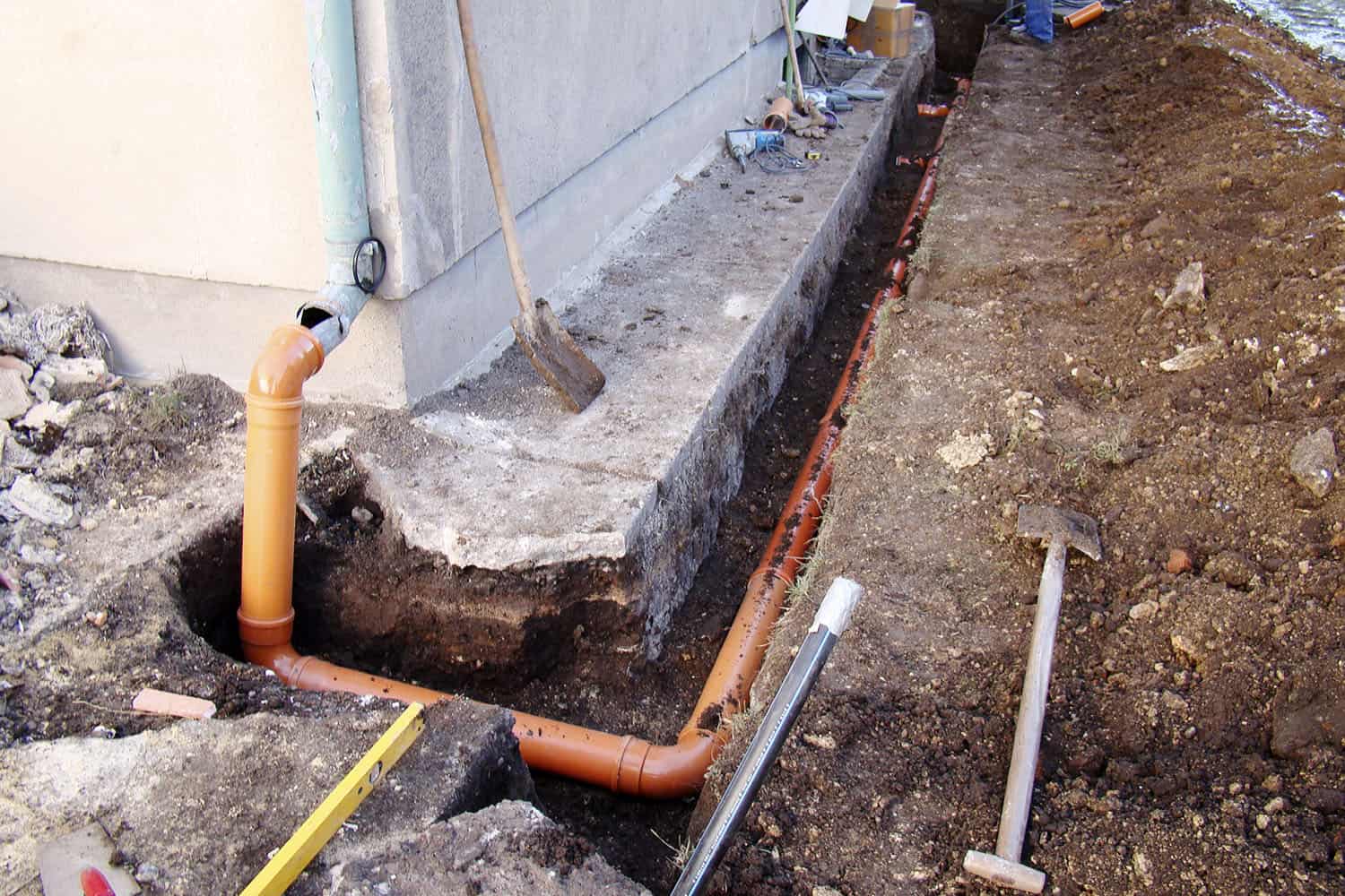 S ohledem na příznivé počasí jsme se, paralelně s bouracími pracemi, pustili do budování dešťové kanalizace. Doposud totiž byla dešťová voda svedena do zahrady, což nebylo příliš šťastné řešení. V podstatě bylo nutno zcela nově vybudovat napojení na svody ze tří okapů a dvou anglických dvorků před okny do sklepa. Jedním z nemilých překvapení, které nám Tonička přichystala, bylo to, že podlaha ve sklepě byla asi 20 cm pod úrovní vnější kanalizace.