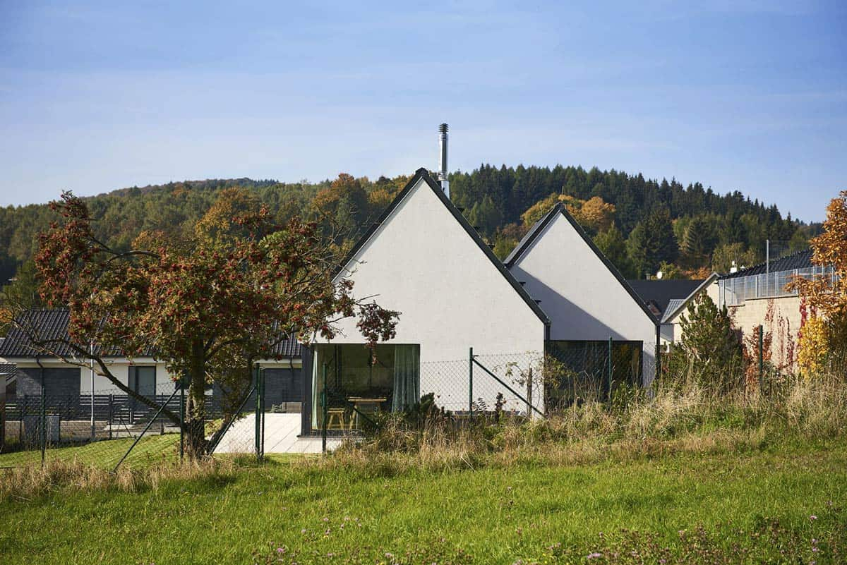 Rekreační dům v malé obci v Krušných horách byl navržen tak, aby poskytoval maximální pohodlní pro víkendové a rekreační pobyty tříčlenné rodiny. Zároveň musel architekt vyhovět požadavkům stavebníka na nízké vstupní i provozní náklady a také na odolnost stavby v náročných horských podmínkách, kde se sníh může rychle střídat s deštěm a větrem a kromě drsné zimy občas přijde i suché horké léto.