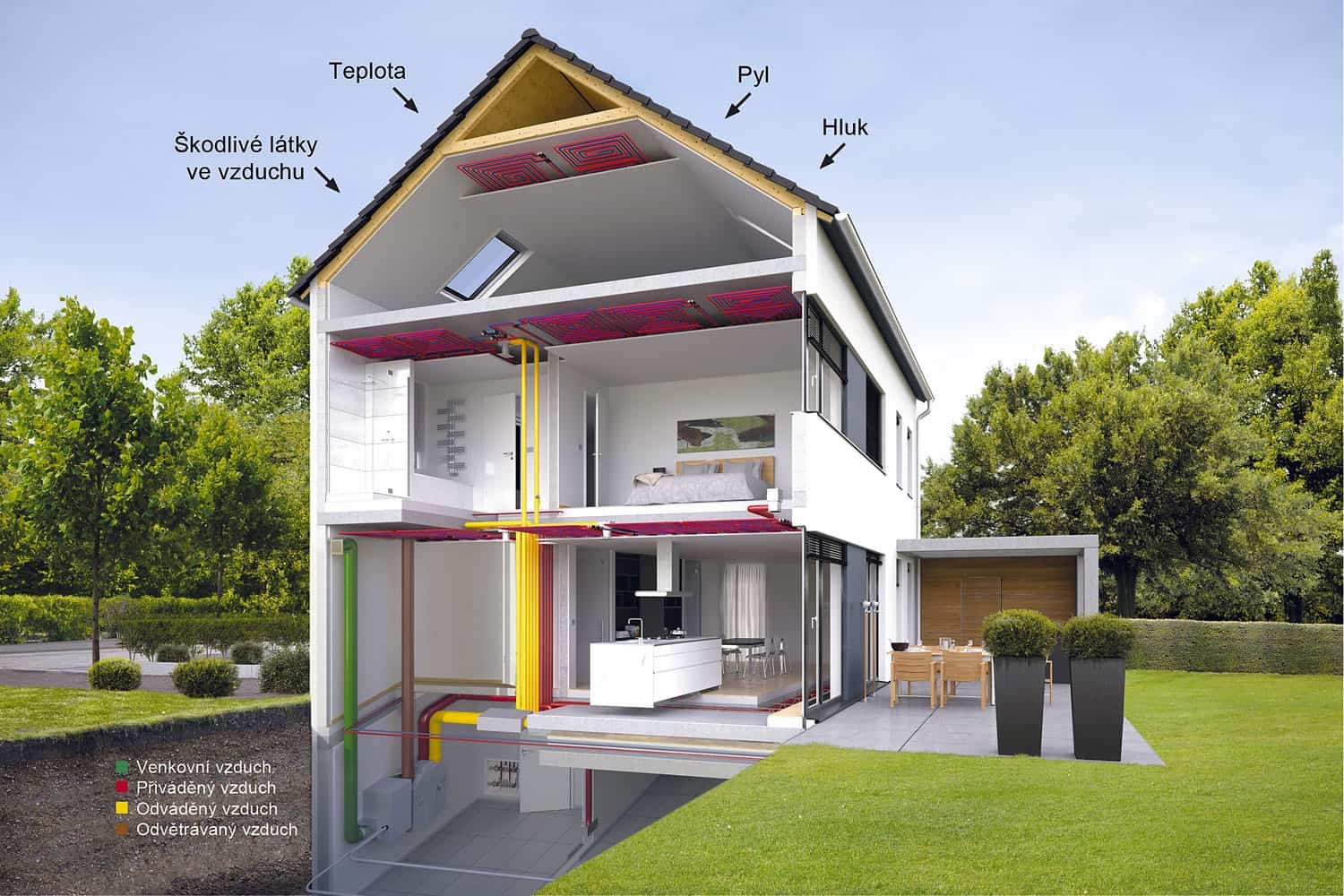 Komfortní, zdravé bydlení vyžaduje nejen tepelnou pohodu, ale i pravidelný přísun čerstvého a hlavně čistého vzduchu. Tyto dvě vzájemně si odporující podmínky je schopno zvládnout rekuperační zařízení. Vlastní vytápění interiéru pak musí zajistit topná soustava.