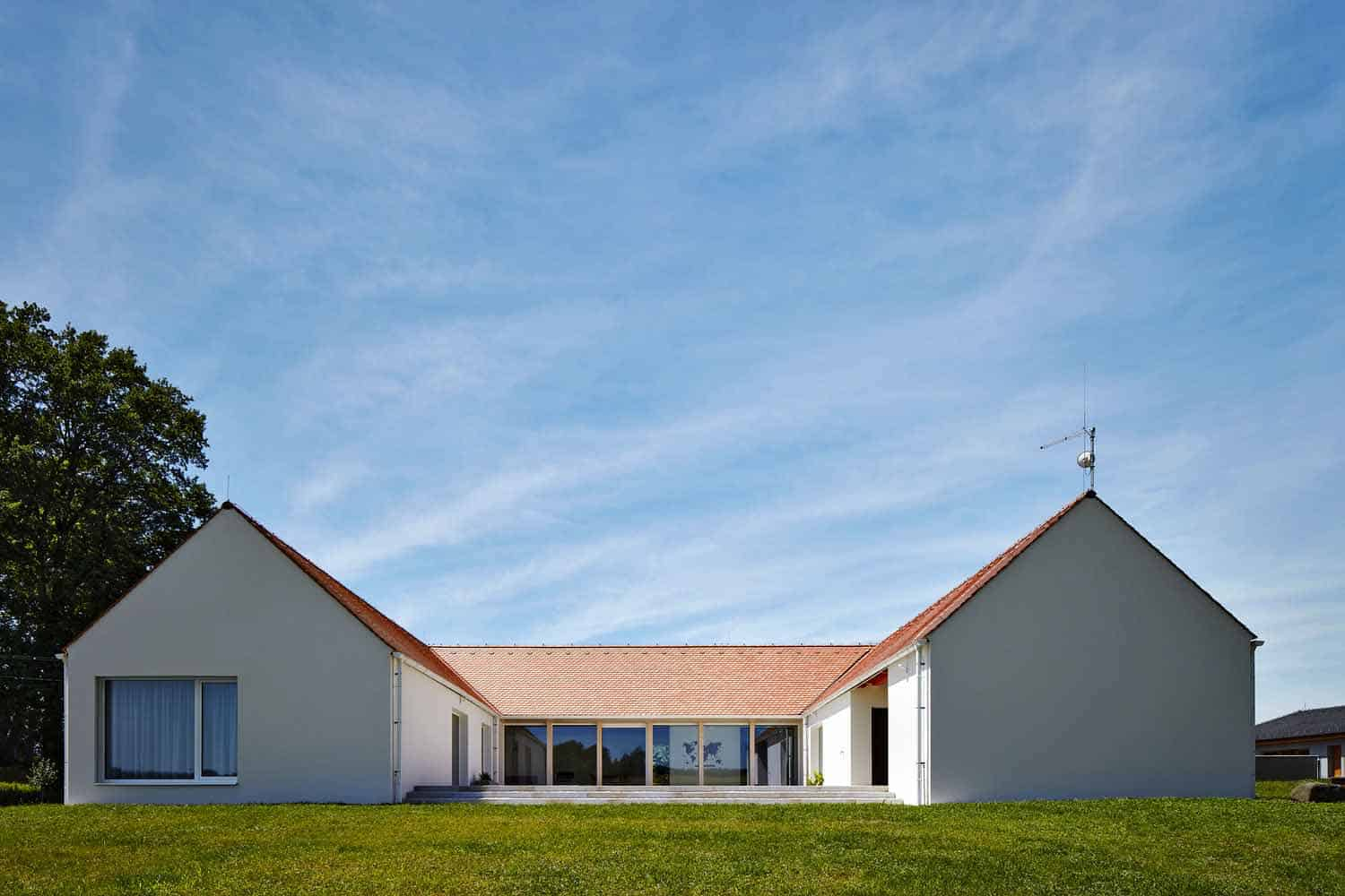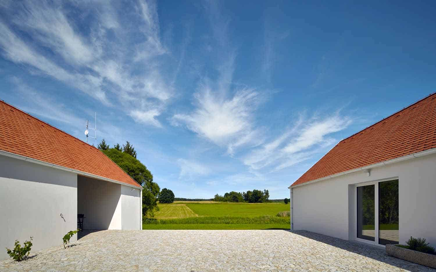 V Miletíně u Lišova vyrostla novostavba, která svým konceptem navazuje na jihočeské statky – na krásné parcele otevřené do okolních luk a polí se usadila důstojně, sebevědomě a přitom klidně. Nepoutá zbytečnou pozornost, její bílé zdi a červené střechy dotvářejí kontext vesnice. Bydlí se tu velice příjemně, velká okna se otevírají do prostorného dvora, který navazuje na okolní krajinu.