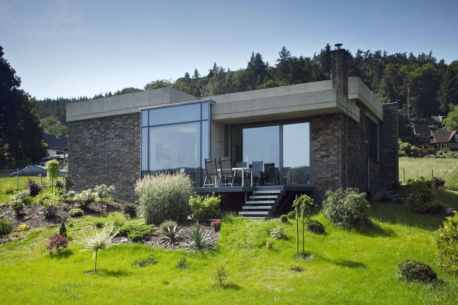 Moderní, napohled poměrně členitý dům postavený v rekreační oblasti na Sázavě citlivě komunikuje se svým okolím. Majitelé i architekt jej budovali s pokorou ke krásnému prostředí a jedinečnému výhledu.