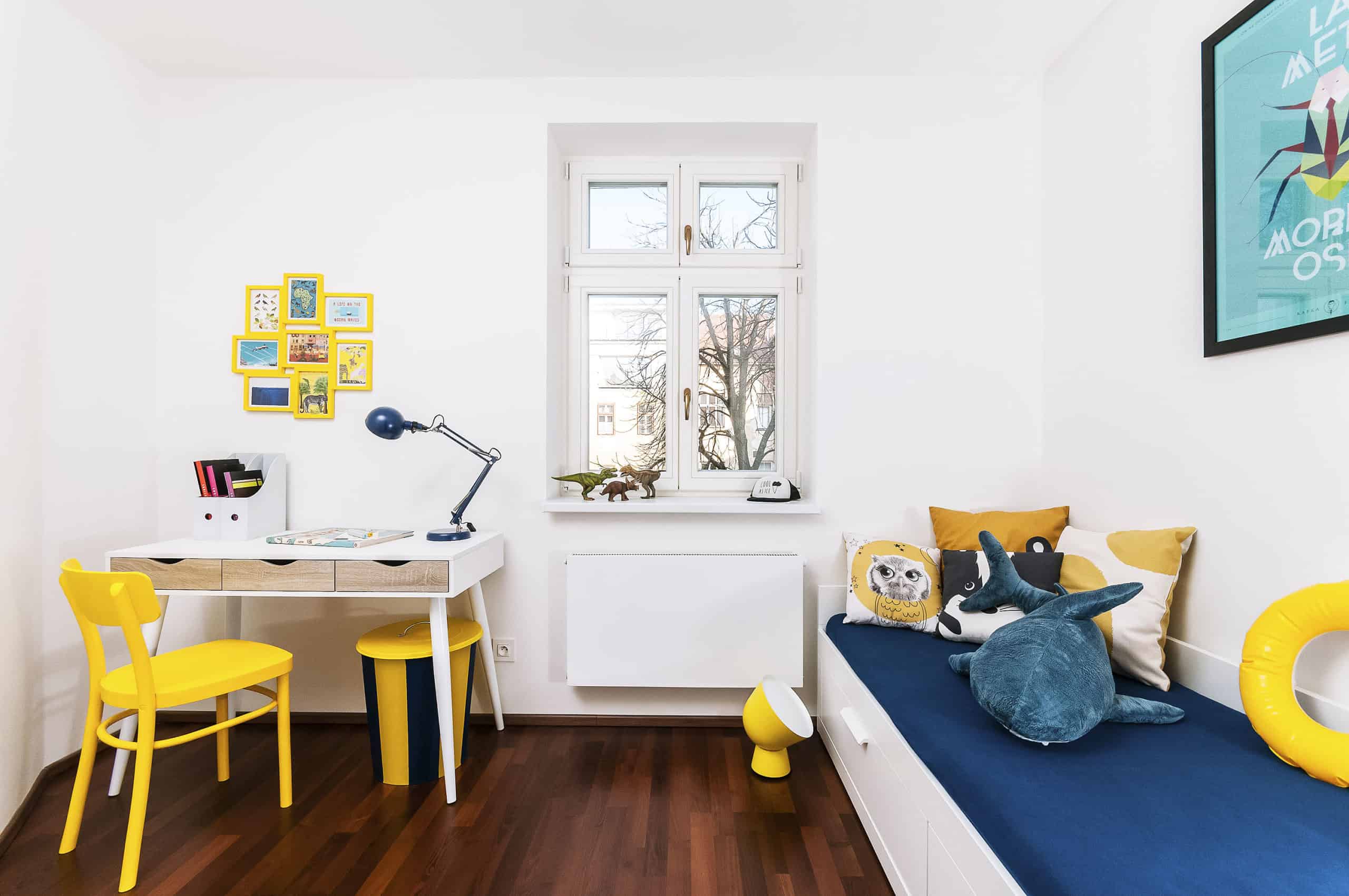 Pokoj, který jsme vybrali pro vzorovou proměnu, je orientován na severovýchod, takže nemá dostatečný přístup slunce. Rozhodli jsme se mu dodat prázdninovou atmosféru pomocí lehce upraveného námořnického stylu.