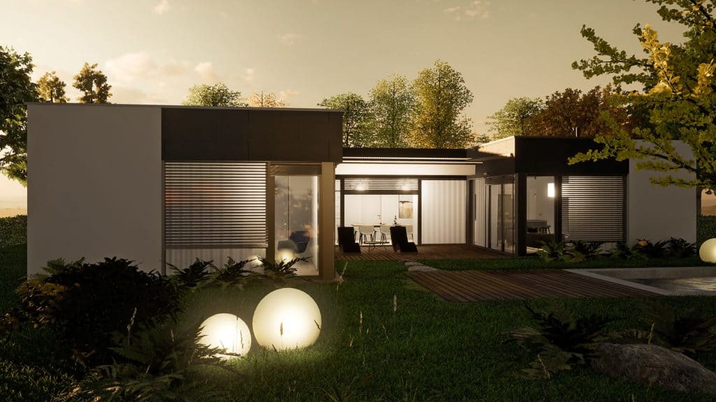 Moderní požadavky na bydlení kladou stále vyšší nároky na použité materiály i jejich funkční vlastnosti. Na foto je atriová dřevostavba Vexta PERFECTO (VEXTA DOMY)