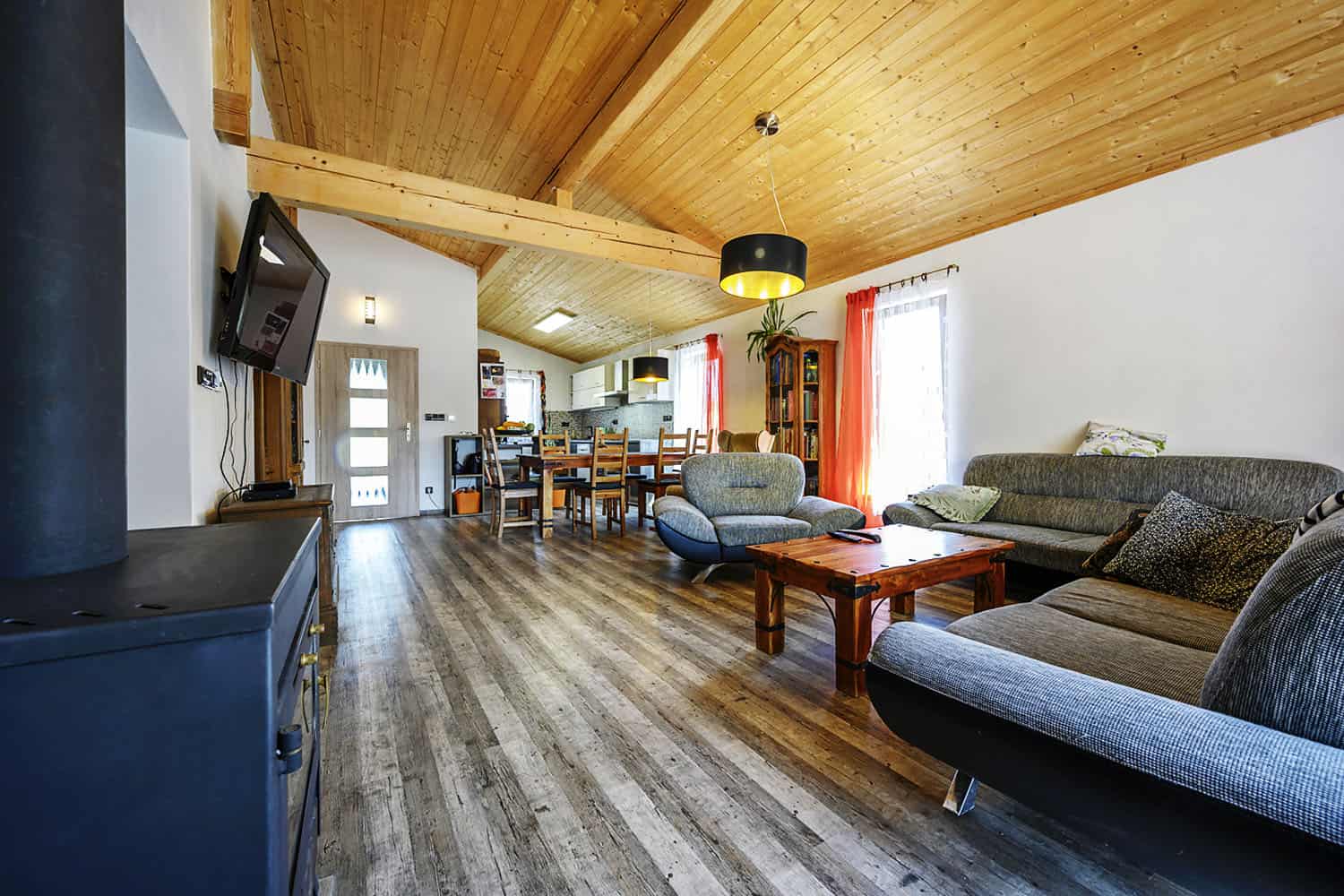 Otevřená konstrukce krovu působí zajímavě a může se stát v interiéru dominantním estetickým prvkem. Interiér je vzdušnější a prostornější a vysoký strop navíc odvádí teplý vzduch a zabraňuje přehřívání. Poradíme, jak nechat dřevo vyniknout.