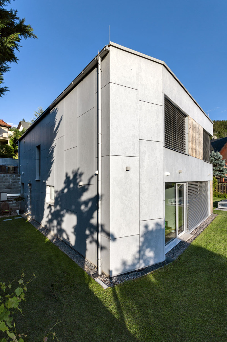 Obec Všenory pár kilometrů na jihozápad od Prahy již od dob první republiky patří k oblíbeným destinacím jak pro bydlení, tak pro rekreaci. Dům postavený na krásném slunném pozemku nad Berounkou maximálně využívá veškerý potenciál, který tu byl k dispozici. Nad své okolí se ale ani fakticky, ani pomyslně nijak nevyvyšuje.