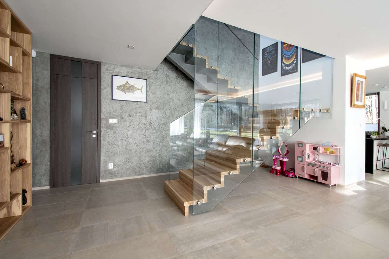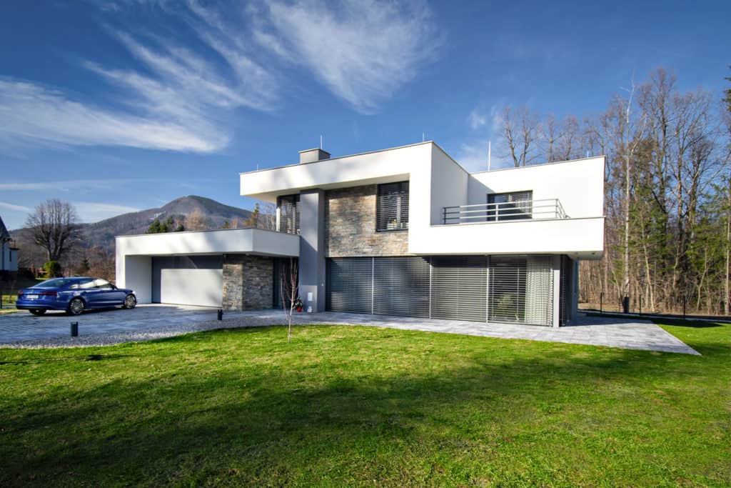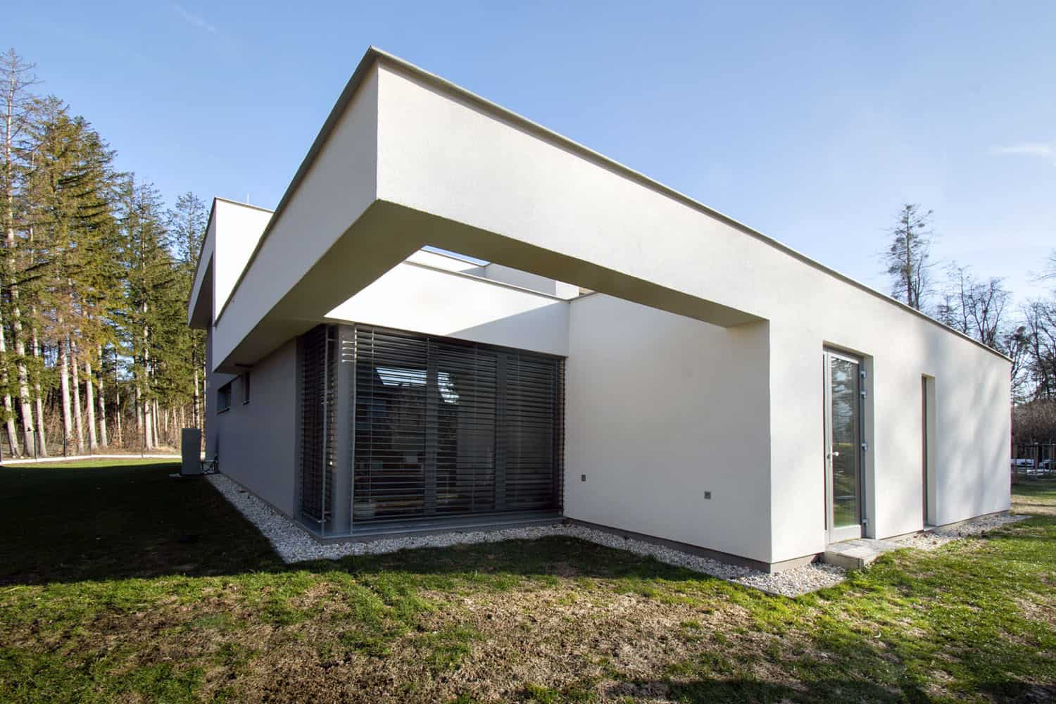 Architekt Martin Náhlovský z ateliéru Master Design upřesňuje autorský záměr: „Stavba tak činí vlastním, geometricky přísným slovníkem, založeným na principu horizontálních linií různých výškových úrovní.“ V typicky horské řídce roztroušené zástavbě se na rozlehlém rovinatém pozemku zrodila pohledná stavba. Ač moderních tvarů, přesto působí v podhůří Beskyd zcela přirozeně. Klasická prosklená příměstská vila s bílou linkou září na pozadí lesa, který vroubí pozemek ze severu. K němu směřují technické a úložné prostory, zatímco většina obytných místností se obrací na jih.