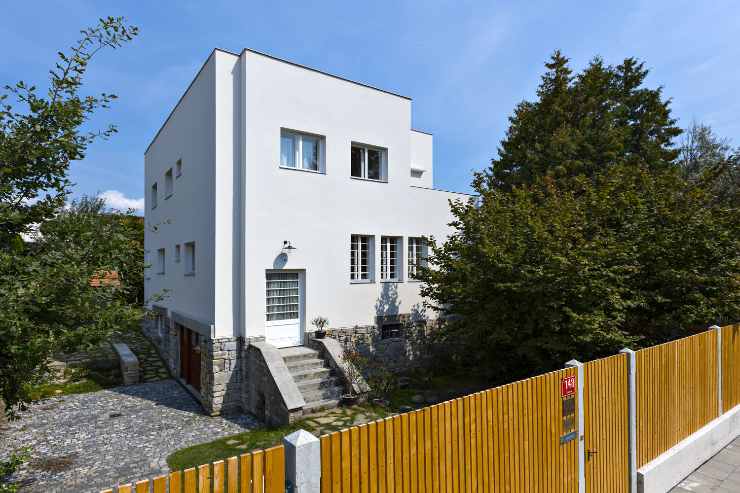 Není Müllerova vila jako Müllerova vila. Ta slavnější se nachází v Praze a jejím autorem je Adolf Loos. Tu, kterou vám zde představujeme, navrhl jeho žák Paul Engelmann a stojí v Olomouci. Pozoruhodné na tom je, že i když vychází ze stejné koncepce – Raumplanu, její stavba nekopíruje tu pražskou, naopak jí předcházela. Zvláštní shodou náhod je také to, že i její první majitelé se jmenovali Müllerovi, přestože s majiteli pražské Müllerovy vily nebyli nijak spřízněni.
