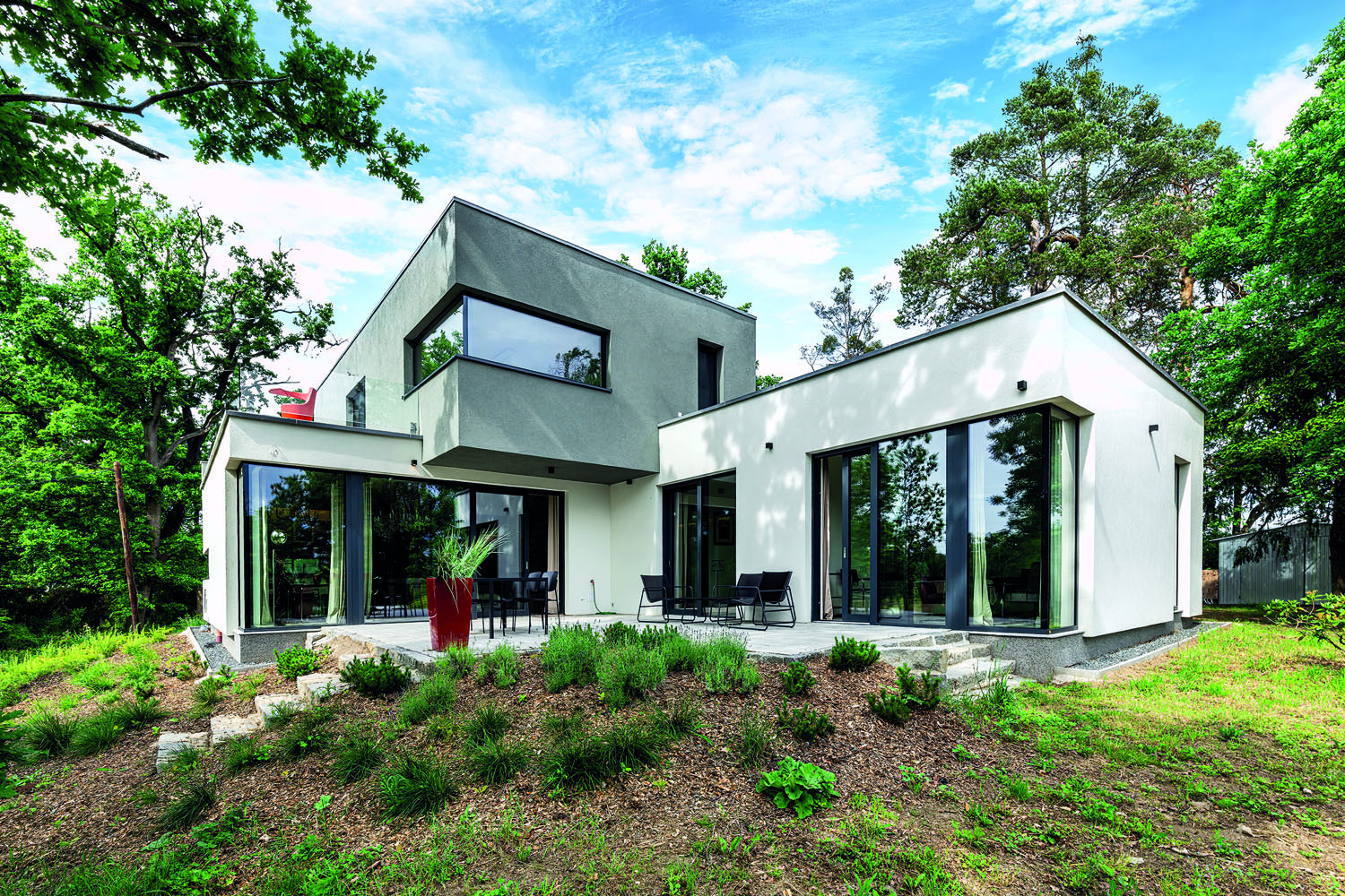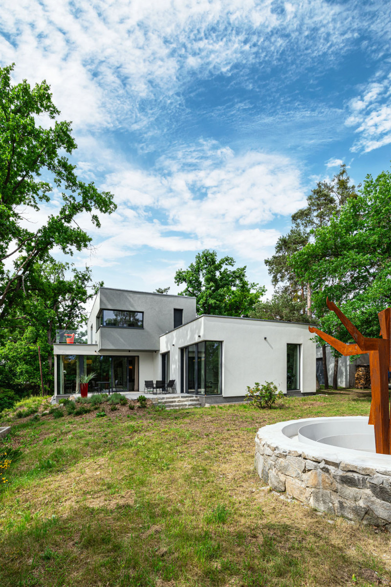 Celý koncept i dispozici si navrhl sám, projekt svěřil stavebnímu projektantovi. „Nemám rád imitace starých věcí, proto je dům moderní s odkazem na funkcionalistický styl,“ vysvětlil nám hned na počátku.