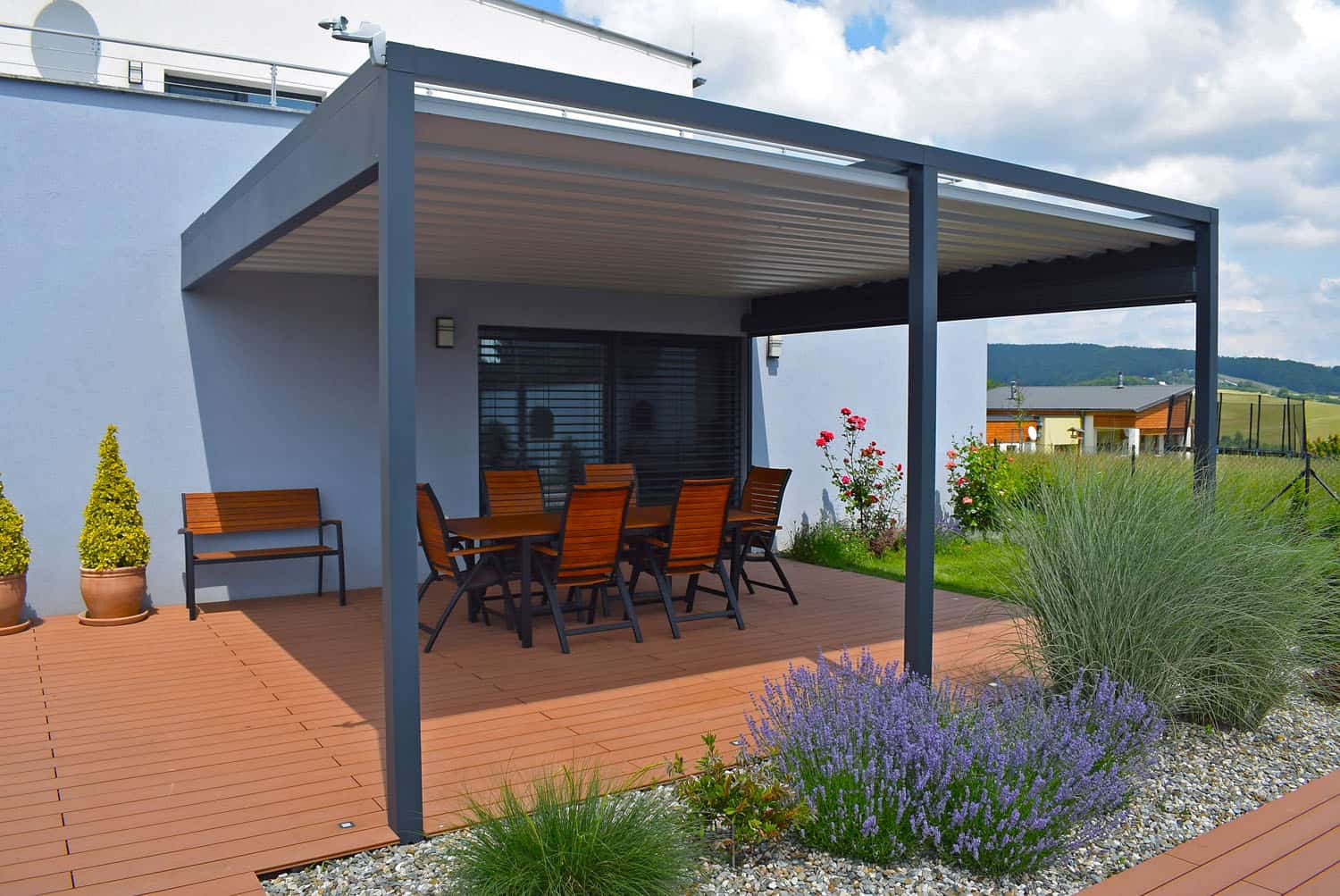Ideální volbou při výběru pergol je nákup přímo od českého výrobce FUTUROL. Máte tak možnost si nechat sestavit pergolu na míru i včetně atypických požadavků