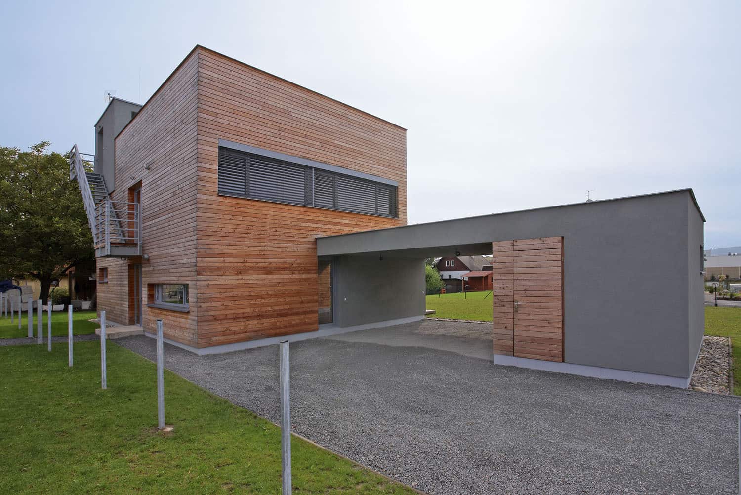 Úsporně pojatý dům vyhraněného geometrického tvaru, který vyrostl v nové čtvrti na okraji středně velkého města, zdobí vyvážený soulad exteriéru a interiéru, harmonie jemných barev a přírodních materiálů.