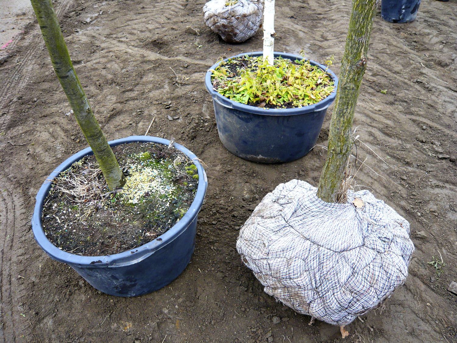 U okrasných dřevin se nabídka trochu liší. Na jaře a na podzim máte možnost pořídit stromy balové. Jejich kořenový systém je krytý vrstvou juty a drátěnkou, která se může při výsadbě nechat na kořenech. Balové stromy jsou většinou znatelně levnější než kontejnerové, ale jsou dostupné jen na začátku a na konci sezony podobně jako ovocné prostokořenné stromky. Pokud chcete trochu předběhnout čas a rovnou na zahradu vysadit už vzrostlý strom, počítejte s tím, že si budete muset sáhnout o něco hlouběji do peněženky.