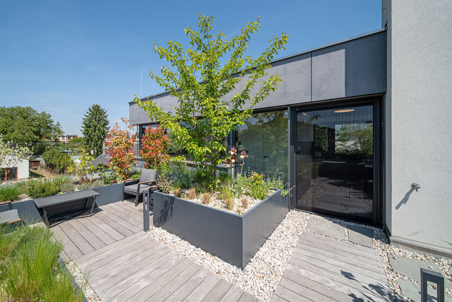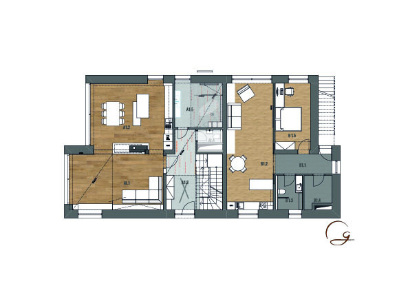 Stavebníci si přáli velkorysou rodinnou vilu a věděli, že bez architektů a dobrých nápadů to nepůjde. Výsledkem úspěšné spolupráce s profesionály je nový atypický dům rozdělený na tři bytové jednotky, hlavní největší mezonetový byt prochází přes všechna podlaží. Je řešený tak, aby mohl naplno čerpat benefity vyplývající z umístění stavby na svažitém pozemku – výhledy z teras, střešní zahrady, ale také příjemné přirozené prosvětlení veškerých obytných místností.